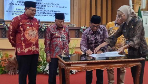 Penandatanganan tersebut dilakukan dalam rapat paripurna yang diselenggarakan oleh DPRD Kabupaten Malang di Ruang Rapat DPRD, Kamis (15/08/2024).