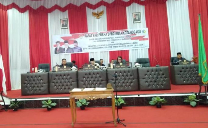ADVETORIAL, KOTAMOBAGU – Dewan Perwakilan Rakyat Daerah (DPRD) Kota Kotamobagu menggelar Paripurna Dalam Rangka Penutupan Masa Persidangan Tahun 2018, dan Pembukaan Masa Persidangan tahun 2019, serta Pengambilan Sumpah/Janji Serta Pelantikan Anggota DPRD Kota Kotamobagu Pengganti Antar waktu sisa Jabatan 2014-2019, Jumat (24/01/2019).