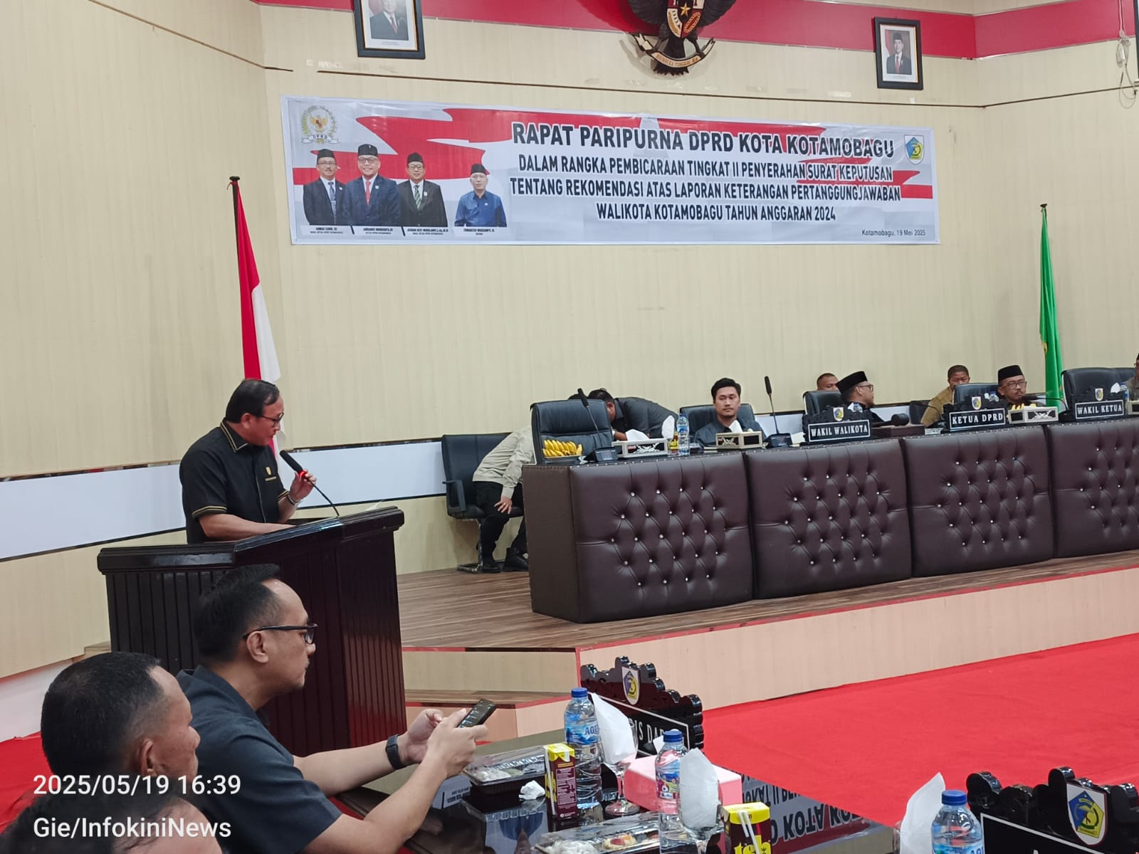 Advertorial, Kotamobagu — Dewan Perwakilan Rakyat Daerah (DPRD) Kota Kotamobagu sukses menyelenggarakan Rapat Paripurna Tingkat II dalam rangka penyerahan Surat Keputusan Rekomendasi atas Laporan Keterangan Pertanggungjawaban (LKPJ) Wali Kota Kotamobagu Tahun Anggaran 2024. Senin 19 Mei 2025.