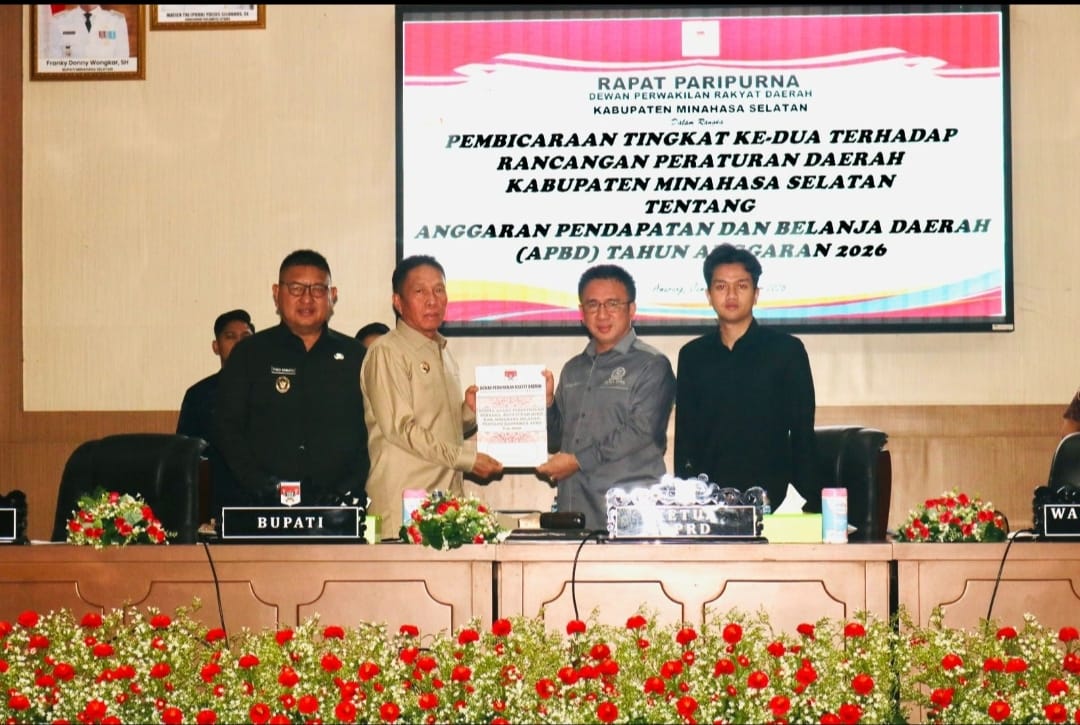 Berbagai tahapan penyusunan APBD Kabupaten Minahasa Selatan Tahun Anggaran 2026 telah dilaksanakan secara bertahap. Pada 21 November 2025 telah dilakukan penandatanganan Nota Kesepakatan KUA-PPAS, dan pada 24 November 2025 telah dilaksanakan Pembicaraan Tingkat Pertama terhadap Rancangan Peraturan Daerah tentang APBD Tahun Anggaran 2026. Agenda saat ini merupakan Pembicaraan Tingkat Kedua sebagai kelanjutan dari proses tersebut.