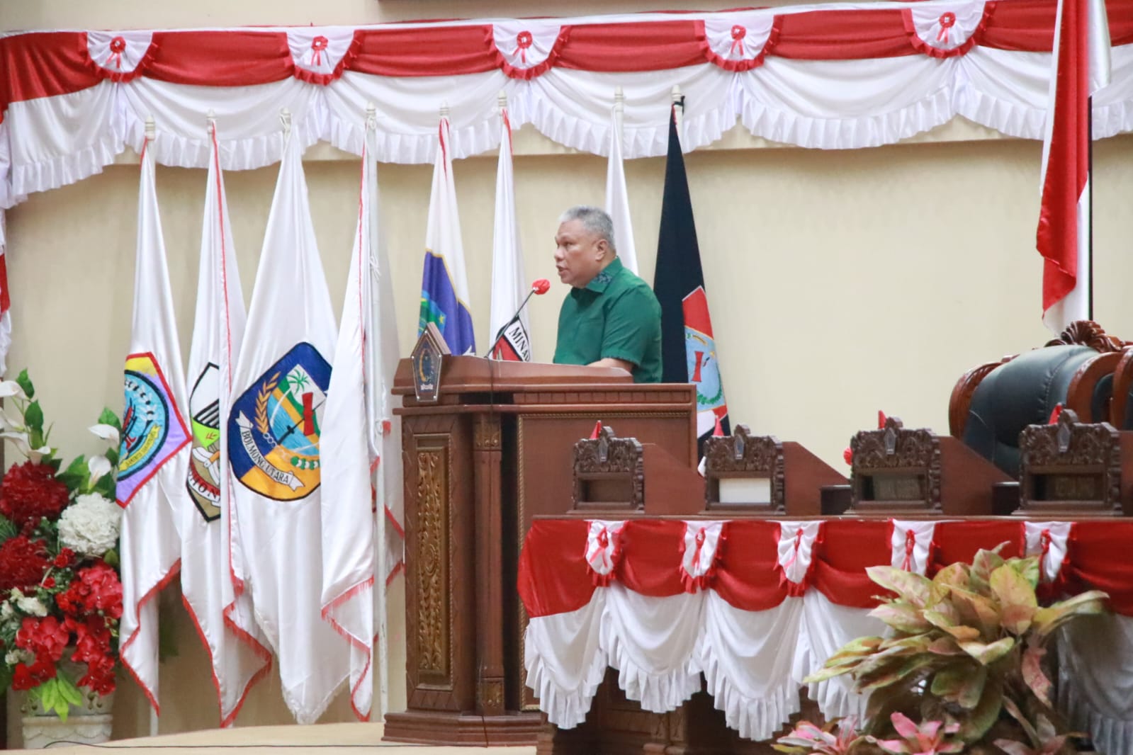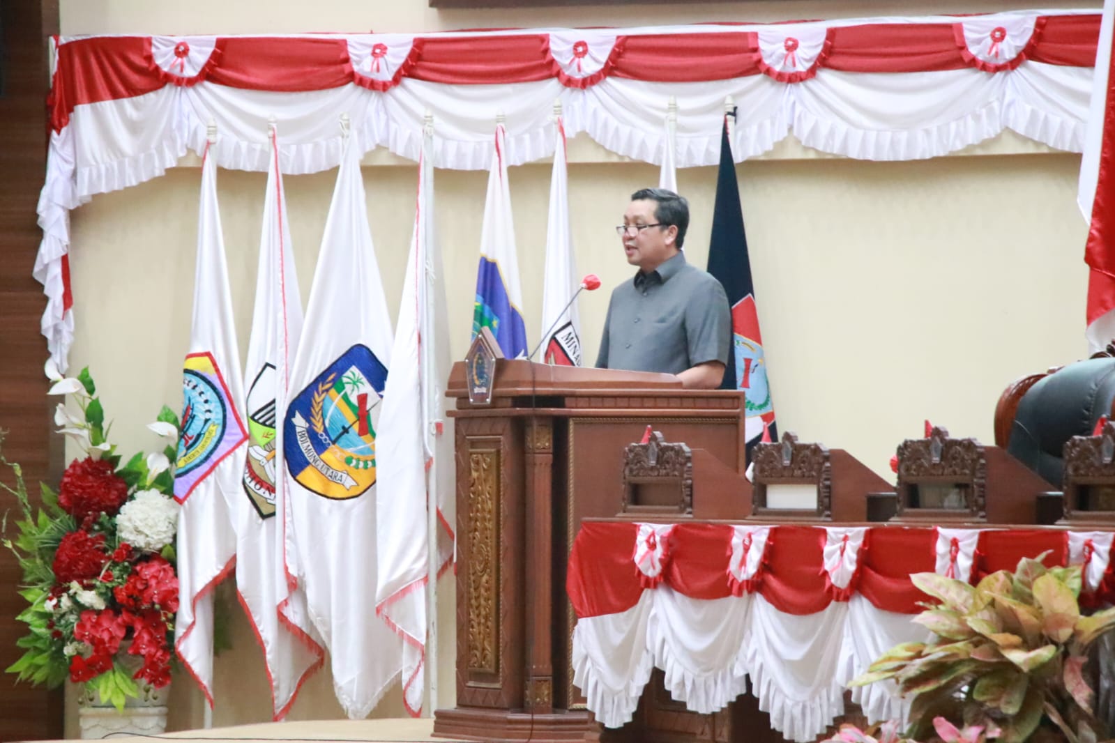 Dalam sambutannya, Gubernur Sulut, Olly Dondokambey yang diwakili oleh Wakil Gubernur Sulut, Steven O.E Kandouw mengucap puji dan syukur ke hadirat Tuhan Yang Maha Kuasa, atas berkat dan anugerah-Nya kita dapat berkumpul di sini dalam keadaan yang sehat dan kuat untuk melaksanakan Rapat Paripurna ini.