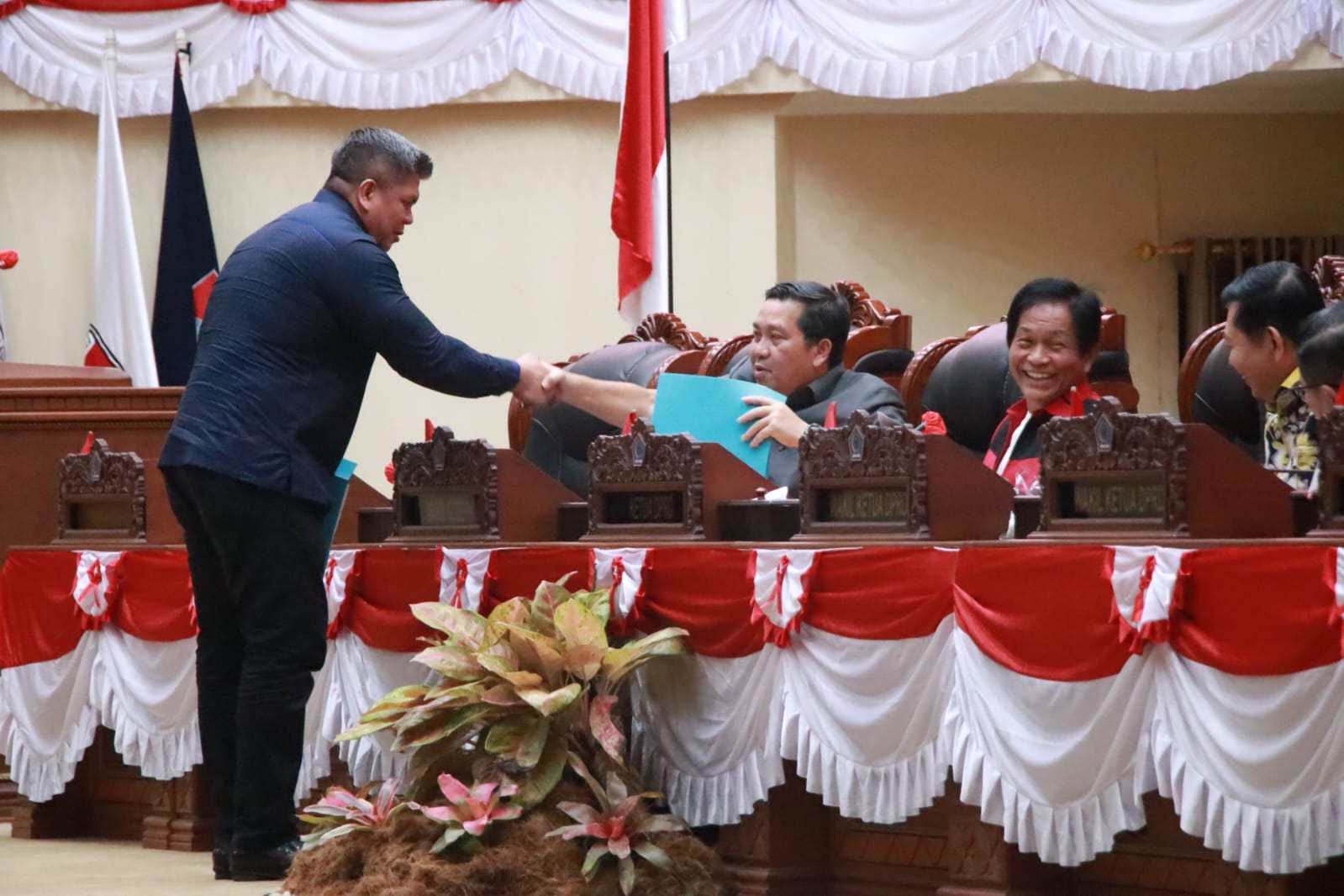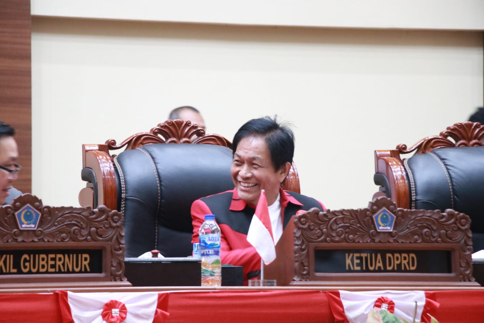 Rapat Paripurna tersebut dipimpin oleh Ketua DPRD Sulut, Fransiscus A Silangen, didampingi Wakil Ketua DPRD Sulut, Victor Mailangkay dan Billy Lombok.
