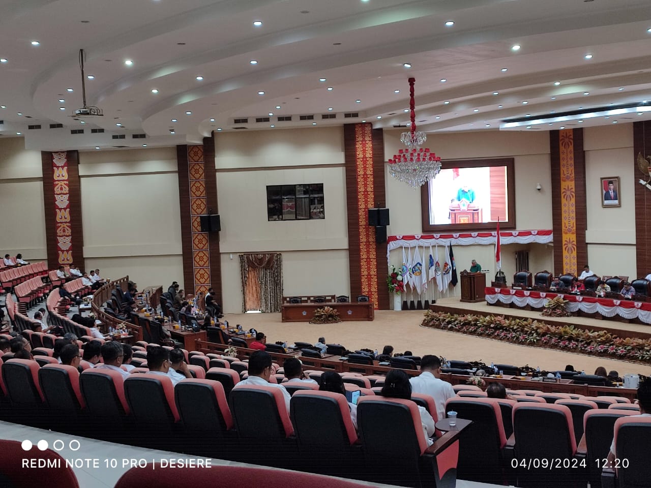 IKNews- ADVETORIAL- Dewan Perwakilan Rakyat Daerah (DPRD) Provinsi Sulawesi Utara (Sulut) menggelar Rapat Paripurna dalam rangka Penyampaian/Penjelasan Gubernur Terhadap Ranperda Tentang APBD Provinsi Sulut T.A 2025 Sekaligus Pemandangan Umum Fraksi Terhadap Ranperda Tersebut Serta Tanggapan Dan Atau Jawaban Gubernur Atas Pemandangan Umum Fraksi, bertempat di Ruang Rapat Paripurna DPRD Sulut, Rabu (4/9) siang.