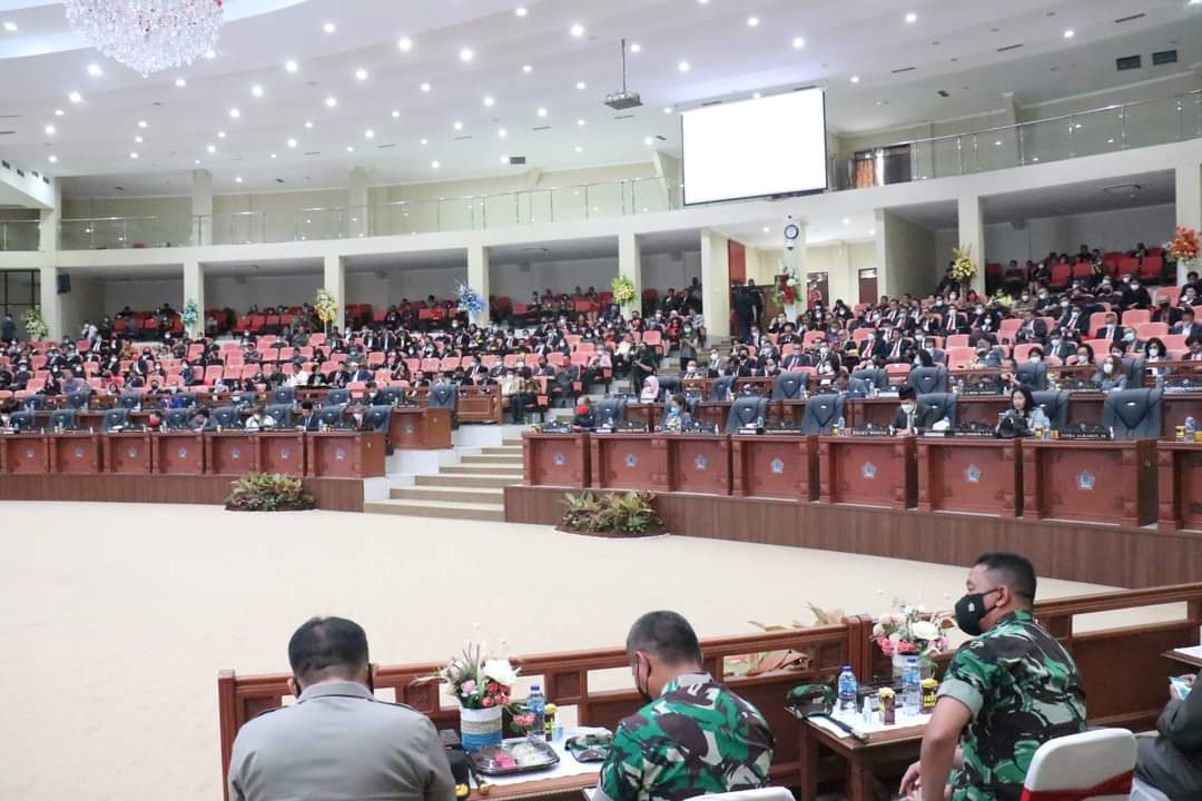 Rapat Paripurna ini dipimpin langsung oleh Ketua DPRD Sulut dr.Fransiscus Andi Silangen, Sp.B, KBD di dampingi Wakil Ketua DPRD Sulut Victor Mailangkay dan Billy Lombok,serta dihadiri Gubernur Sulut Olly Dondokambey dan Wakil Gubernur Steven O.E Kandouw, dan Anggota VI BPK RI BPK RI Dr. Pius Lustrilanang, S.IP., M.Si., CFrA., CSFA,.