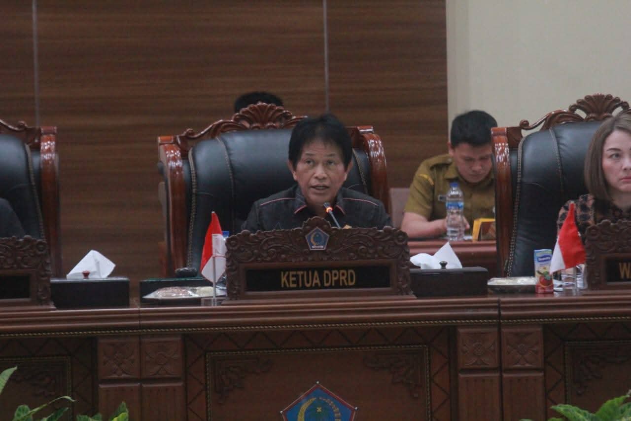 Rapat Paripurna ini dipimpin oleh Ketua DPRD Sulut, dr. Fransiscus Andi Silangen, Sp.B KBD didampingi Wakil Ketua DPRD Sulut dr. Michaela Elsiana Paruntu, MARS dan Royke Anter, SE,ME serta Stella Runtuwene, Amd.Sek.