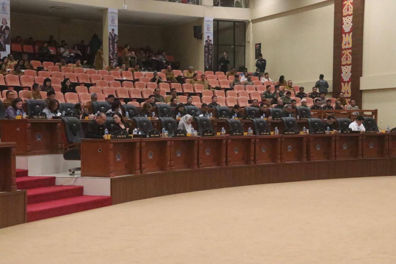 Rapat Paripurna ini dipimpin oleh Ketua DPRD Sulut, dr. Fransiscus Andi Silangen, Sp.B KBD didampingi Wakil Ketua DPRD Sulut dr. Michaela Elsiana Paruntu, MARS dan Royke Anter, SE,ME serta Stella Runtuwene, Amd.Sek.