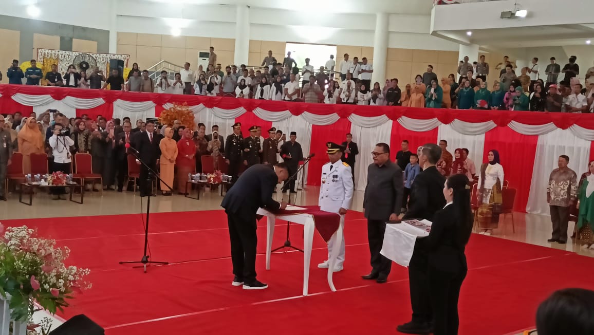 Acara pelantikan berlangsung khidmat di Graha aula Mapalus Pemprov Sulut, dihadiri dan disaksikan langsung oleh Forkopimda serta sejumlah pejabat dan tamu undangan.