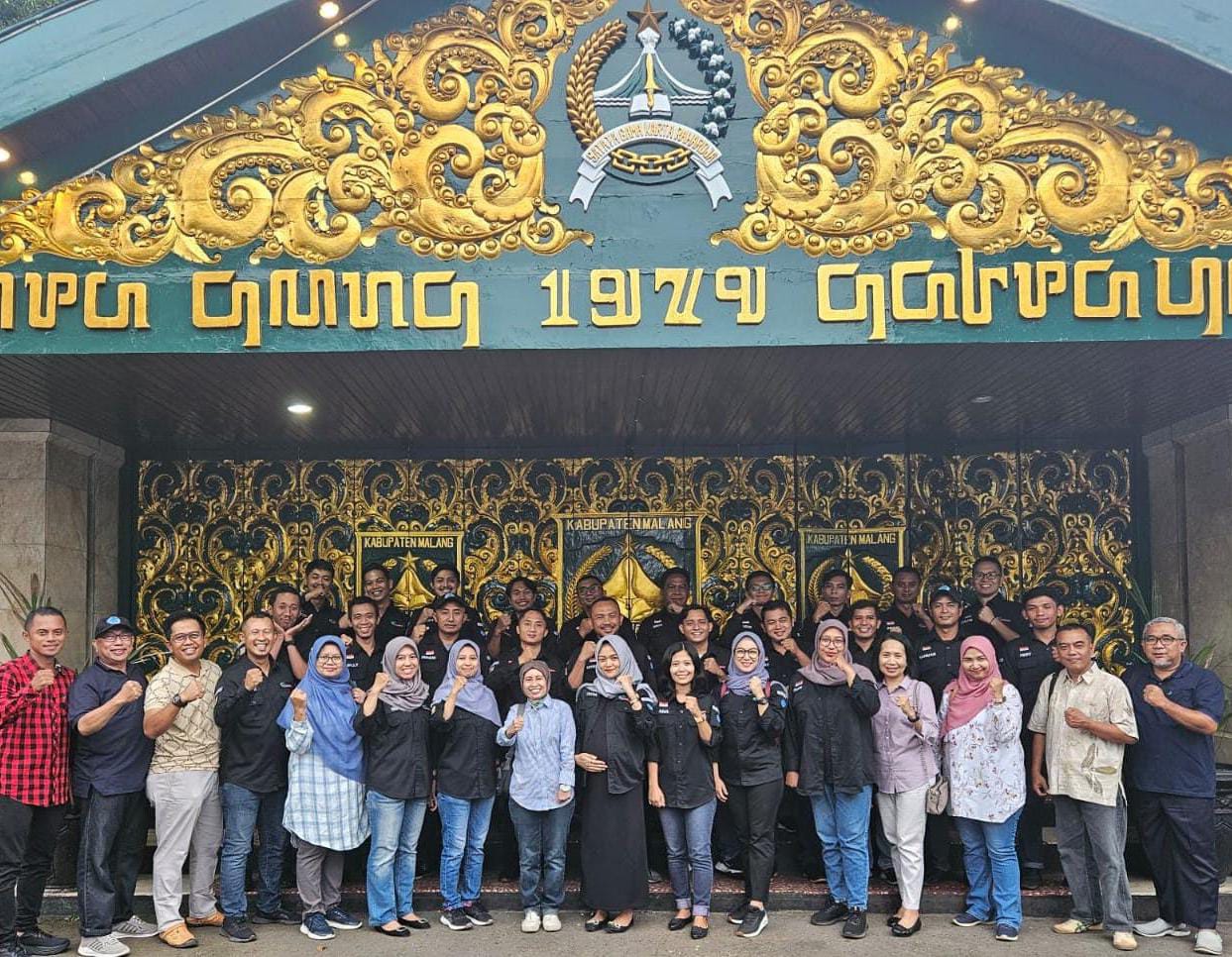 Gambar. Kepala Dinas Pekerjaan Umum Sumber Daya Air Kabupaten Malang, Farid Habibah, ST. MT. photo bersama peserta Pelatihan pengelolaan Sumber Daya Air Terpadu yang lolos ke 3 besar. (29/2/24).