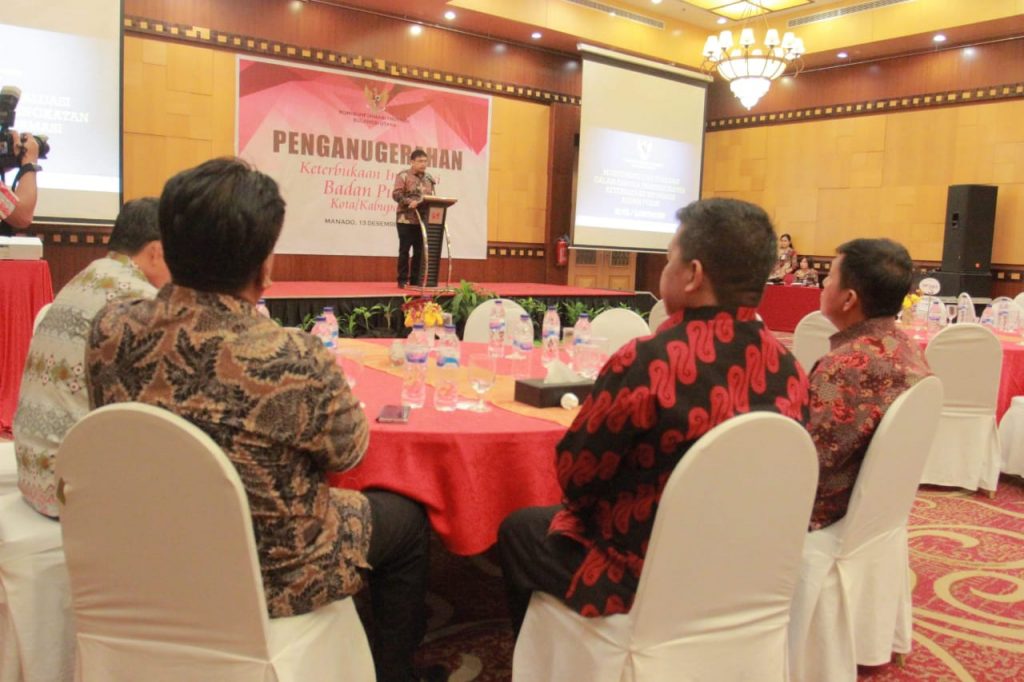 Kegiatan Penganugerahan Keterbukaann Informasi Badan Publik yang dilaksanakan di SwissBell Hotel – Manado tersebut, juga dihadiri perwakilan unsur forum koordinasi pimpinan daerah Sulawesi Utara, para pimpinan daerah, serta Kepala Dinas Infokom se – Provinsi Sulawesi Utara.