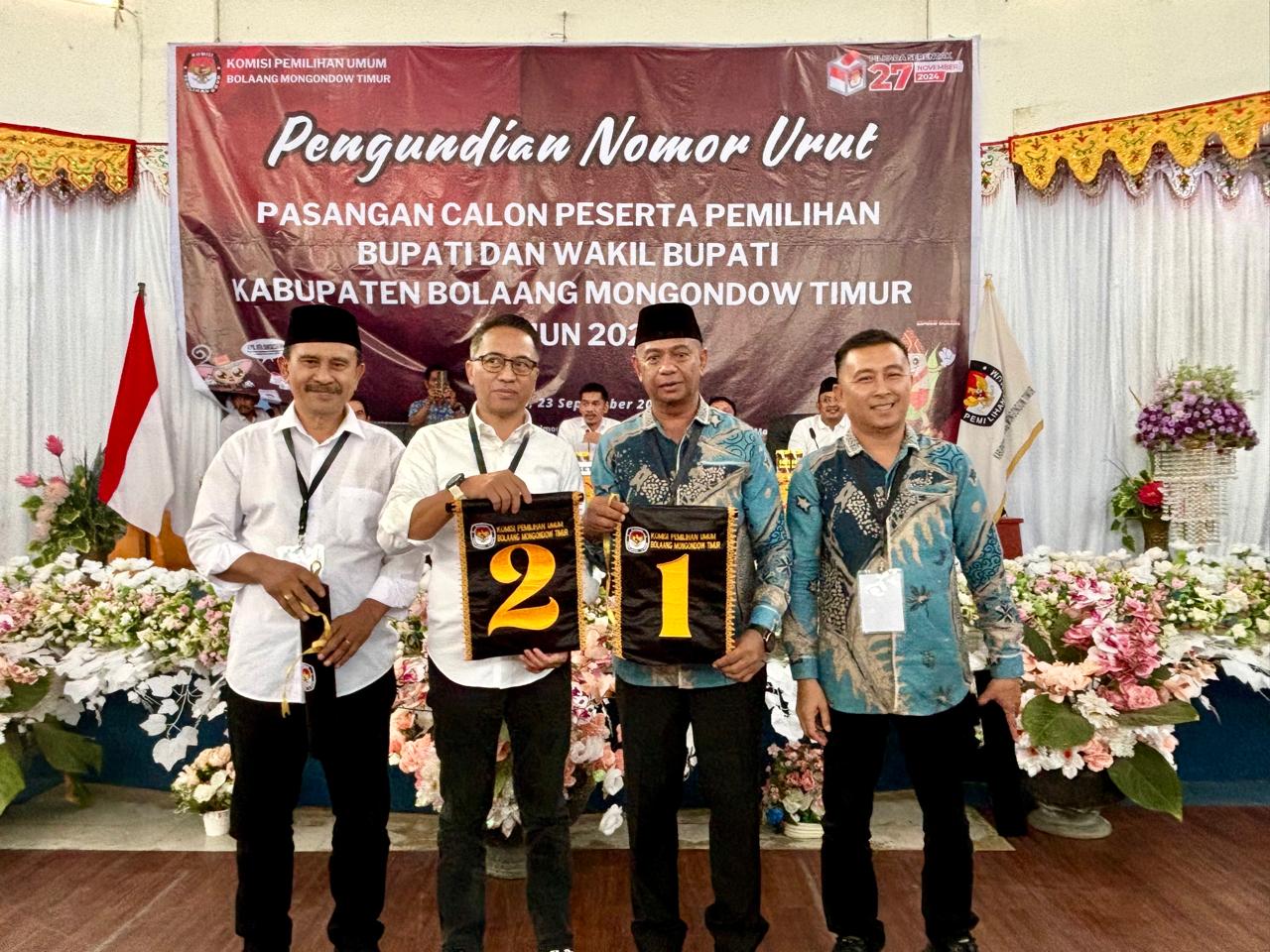 Diketahui pasangan Oskar Manoppo dan Argo Sumaiku mendapatkan nomor urut 1 sedangkan pasangan Sam Sachrul Mamonto dan Rusmin Mokoagow memperoleh nomor urut 2. Advetorial.*