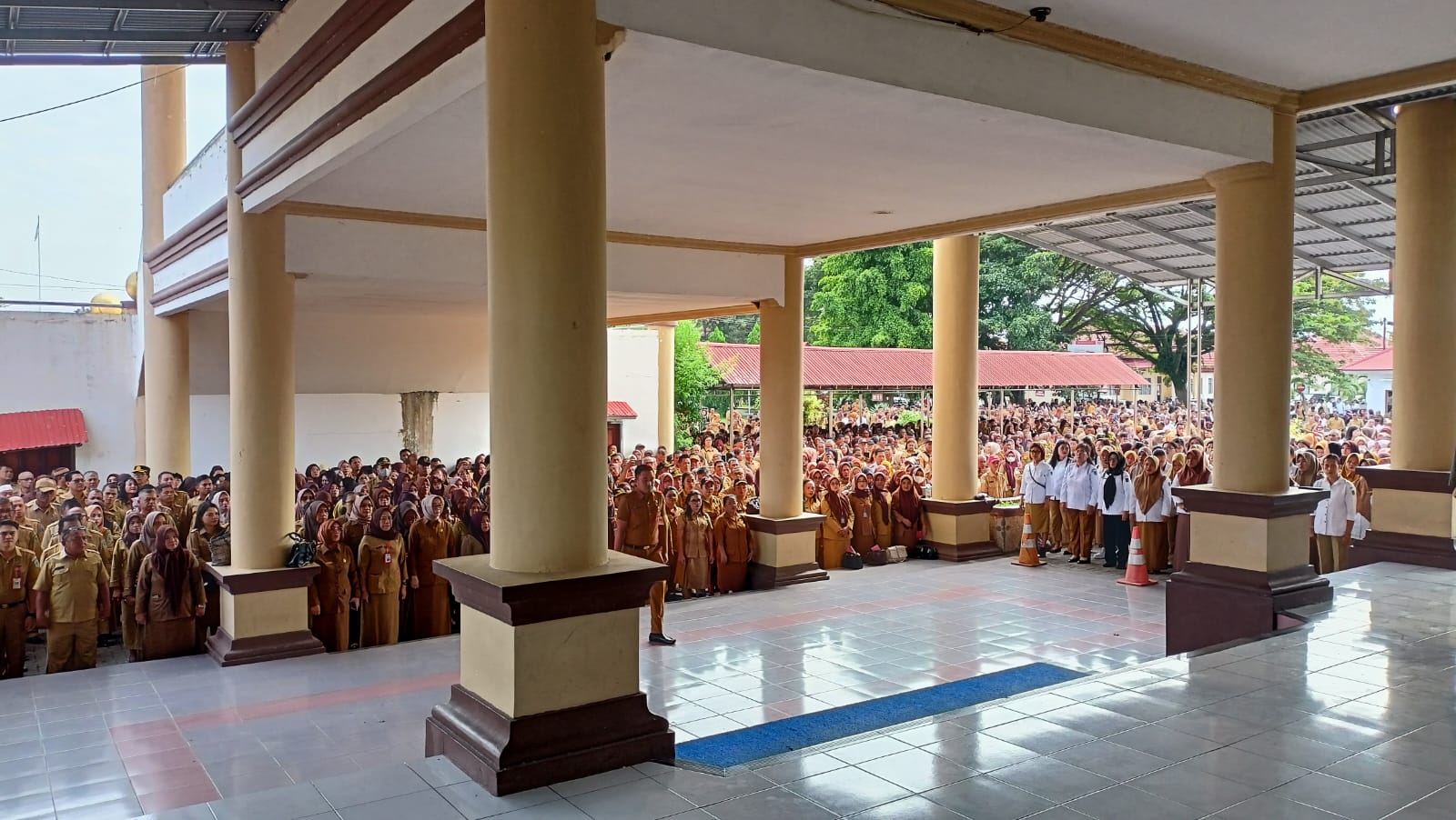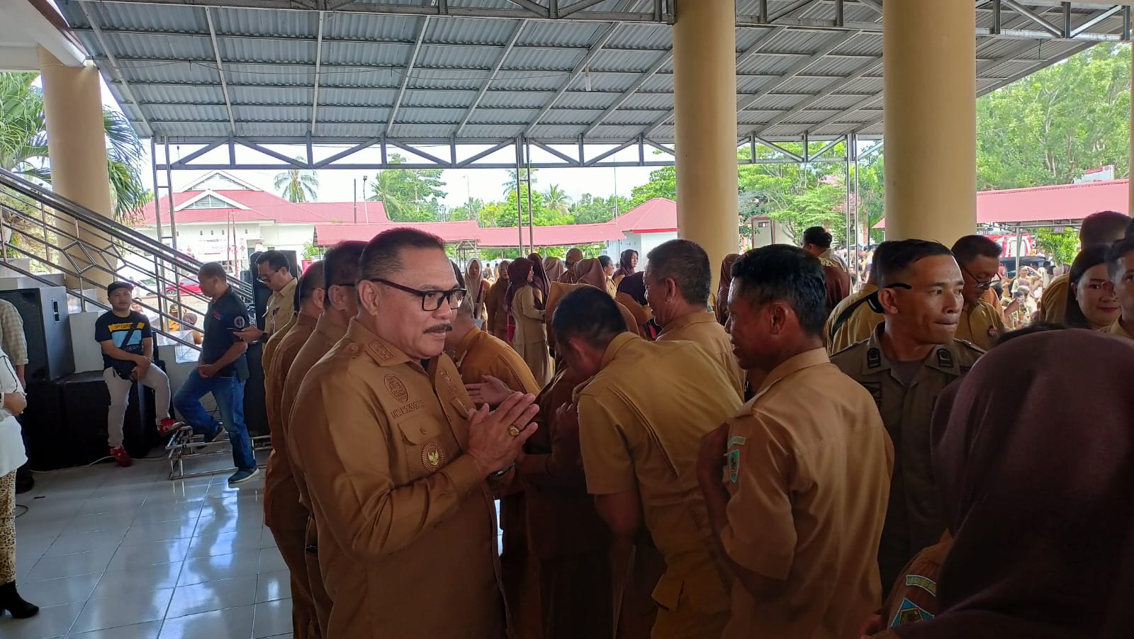 Dalam sambutannya, Bupati Limi Mokodompit menyampaikan ucapan selamat hari raya kepada suluruh ASN yang sudah hadir.