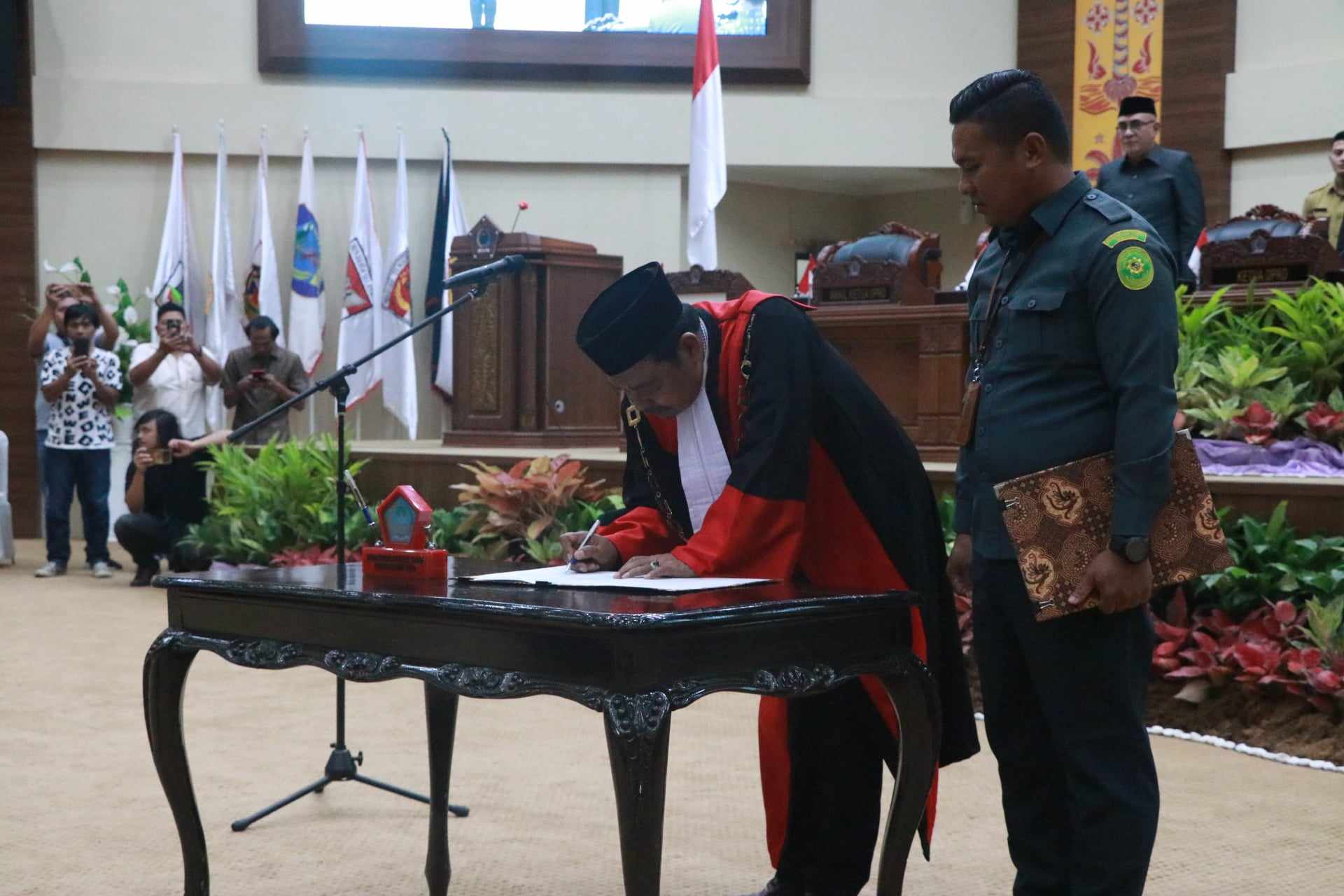 Lewat Surat Keputusan Kemendagri No :100.1.2.4-6145/2023, Ketua Pengadilan Tinggi Negeri Manado, Asli Ginting, SH.MH melantik dan mengucapkan sumpah janji Anggota DPRD Sulut Raski A Mokodompit menjadi Wakil Ketua DPRD Sulut menggantikan James Arthur Kojongian.