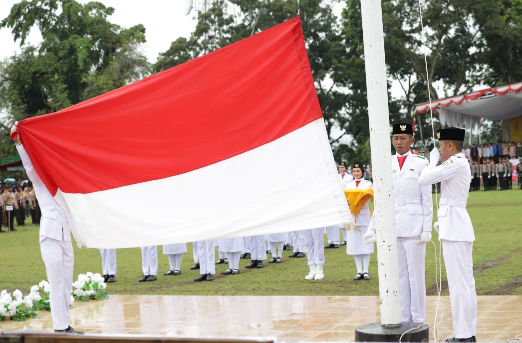 Pada upacara yang tahun ini mengusung tema “Nusantara Baru Indonesia Maju,” Ketua DPRD Kota Kotamobagu, Meiddy Makalalag, S.T., dengan lantang membacakan Naskah Proklamasi. Momen penuh makna ini disusul dengan pengibaran Bendera Merah Putih yang dilaksanakan dengan sempurna oleh Pasukan Pengibar Bendera Pusaka (Paskibraka) Kota Kotamobagu.