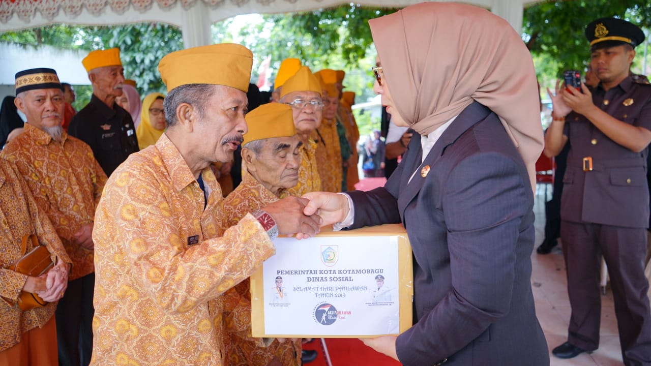 Peringatan Hari Pahlawan kali ini, Walikota menyerahkan bantuan kepada anggota legiun veteran Kotamobagu Turut hadir Forkompinda, Pimpinan SKPD, Camat dan Lurah se-Kotamobagu, TNI dan Polri, ASN Kotamobagu serta Pelajar Kotamobagu.