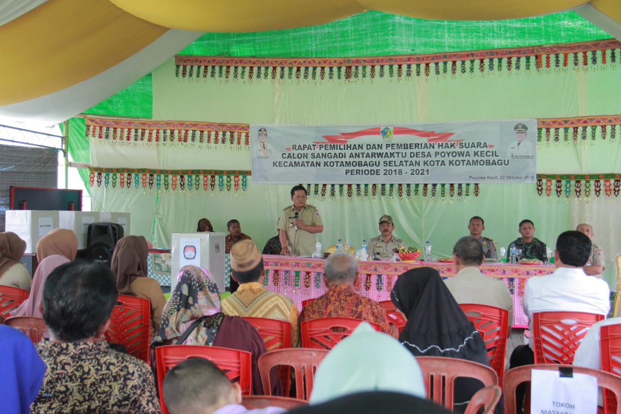 Hal tersebut disampaikan Wakil Walikota Kotamobagu, saat memberikan sambutan pada pelaksanaan kegiatan Pemilihan Sangadi Antar Waktu, Desa Poyowa Kecil, Periode 2018 – 2023, Senin (22/10).