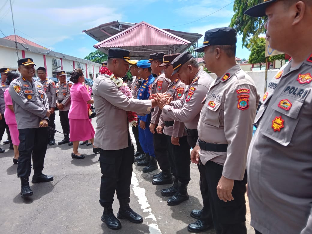 Kedatangan Kapolres Minsel yang baru AKBP. Feri Renaldo Sitorus bersama istri Ny.Sally Feri Sitorus yang merupakan Ketua Bhayangkari Polres Minsel yang baru, penyambutan dengan melaksanakan Apel pelepasan dan arahan pimpinan serta penyematan kalung bunga oleh polisi cilik,barisan Perwira serta seluruh anggota bersama istri Keluarga besar Polres Minsel.