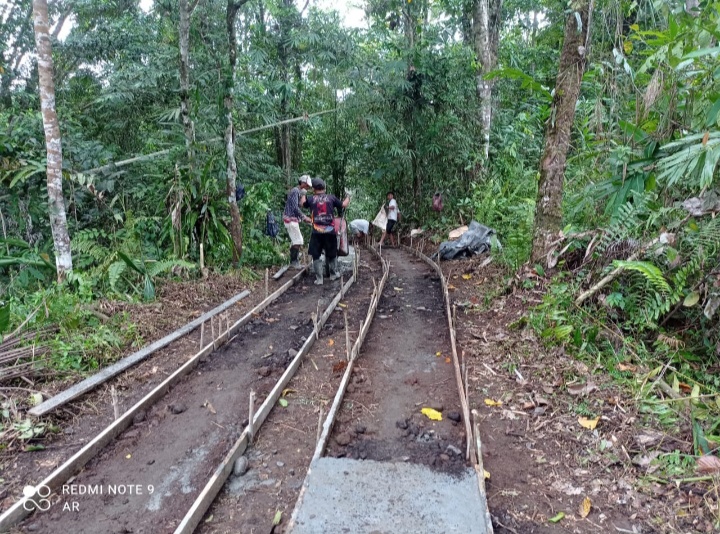 IKNews,Minsel – Pemerintah Desa (Pemdes) Wuwuk Barat Kecamatan Tareran Kabupaten Minahasa Selatan, realisasikan Dana Desa (DD) T.A 2024, sebagaimana tertata dalam Anggaran Pendapatan Belanja Desa (APBDes) melalui Bidang Pelaksanaan Pembangunan Desa, Kegiatan Pembangunan Perkerasan Jalan Usaha Tani, Rabat Beton Jalan Setapak, yang berlokasi di Jalan Kebun Aga Warso (Lanjutan) dengan Volume sesuai yang tercantum pada Papan Informasi kegiatan.