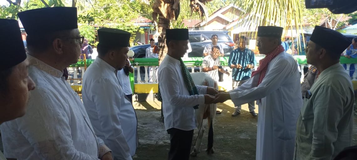 Usai pelaksanaan Shalat Ied, Penjabat Bupati dr. Jusnan C Mokoginta MARS didampingi oleh Penjabat Sekretaris Daerah Abdullah Mokoginta menyerahkan secara simbolis hewan qurban. Penyerahan diterima secara langsung oleh Imam Masjid Al Iqra Desa Lolak. Acara ini juga dihadiri oleh Wakil Ketua DPRD Sukron Mamonto, yang turut serta dalam prosesi penyerahan hewan qurban.