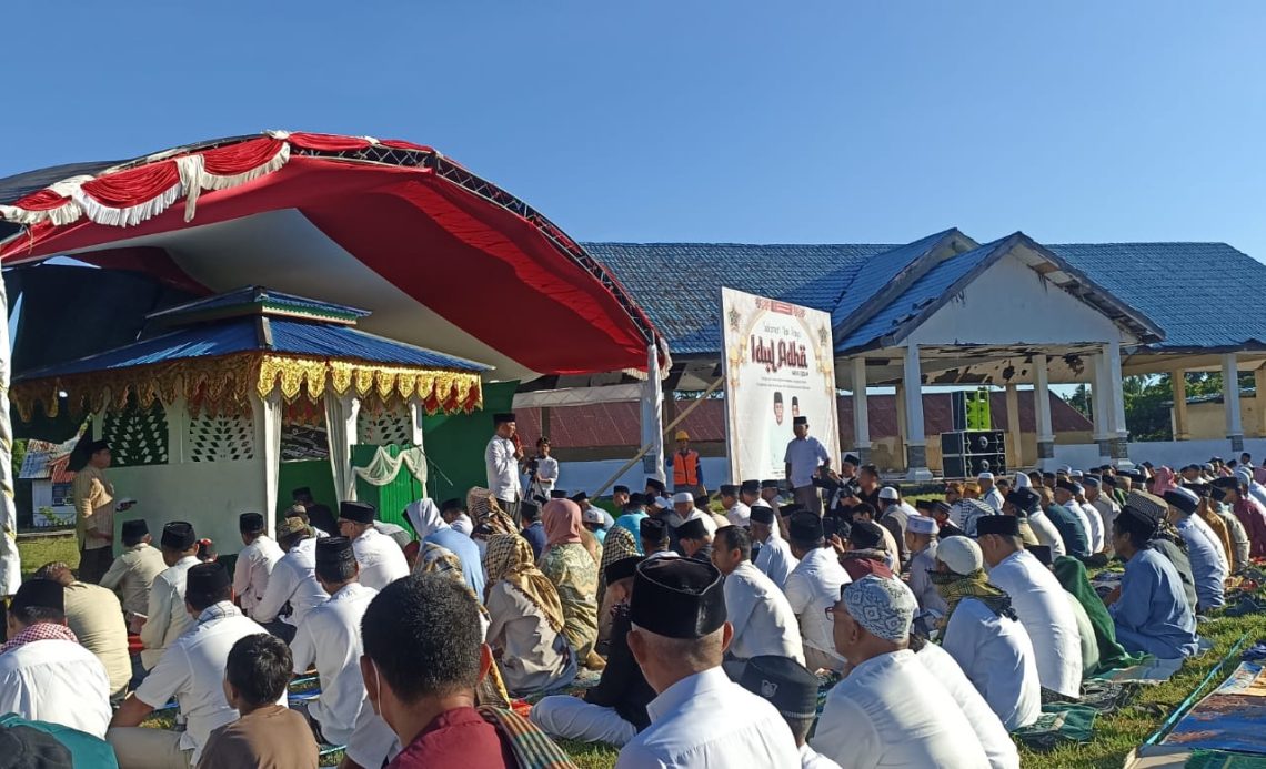 Penjabat Bupati Bolaang Mongondow, dr. Jusnan C Mokoginta MARS, bersama seluruh pimpinan Satuan Kerja Perangkat Daerah (SKPD) turut serta dalam shalat Ied Adha secara berjamaah, membaur bersama masyarakat.