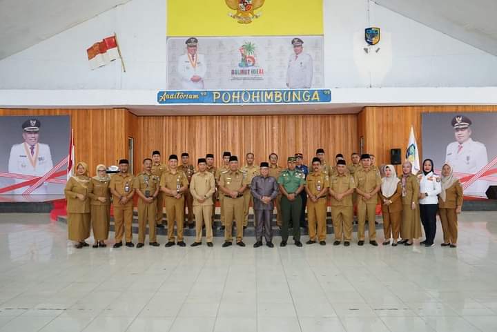 Turut hadir Wakil Bupati Bolmut Drs. Hi. Amin Lasena, MAP, Sekretaris Daerah Bolmut dr. Jusnan C. Mokoginta, MARS, Para Asisten, Perwira Penghubung 1303 Bolaang Mongondow di Boroko Mayor Inf. Burhan, S.Sos, staf ahli Bupati, Pimpinan OPD, serta jajaran ASN.*