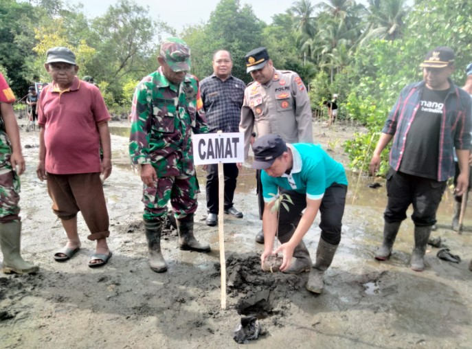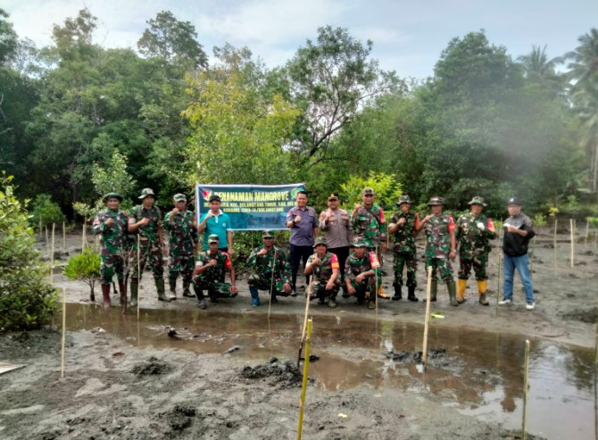 Cegah Abrasi Pantai, Pemda Bolmut Bersama TNI Melakukan Penanaman Pohon Mangrove