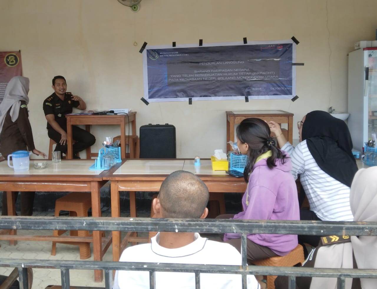Gambar : Kondisi saat Kerjari Bolmut Jual Langsung Barang Sitaan yang sudah berdasarkan hasil penilaian KPKNL Manado, (19/10/2023) Foto : Jefry.