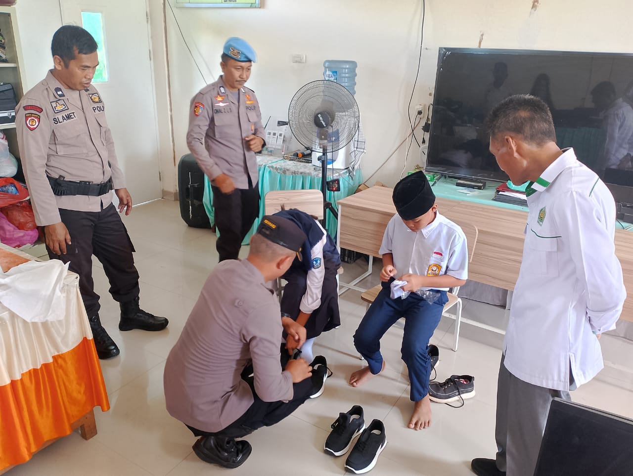 Diketahui bantuan tersebut berupa sepatu.*