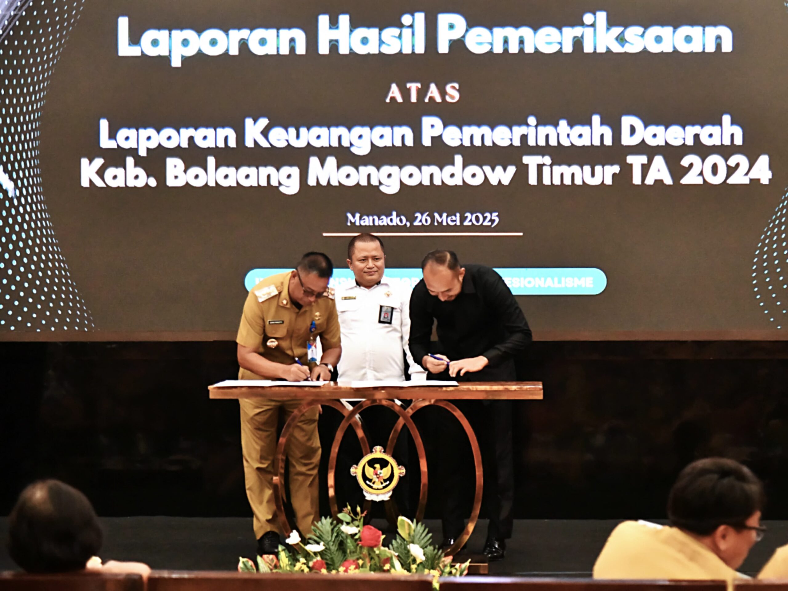 Penyerahan Laporan Hasil Pemeriksaan (LHP) diselenggarakan di Aula Kantor BPK RI Perwakilan Provinsi Sulawesi Utara dan dihadiri langsung oleh Bupati Boltim, Oskar, pada Senin (26/5/2025).