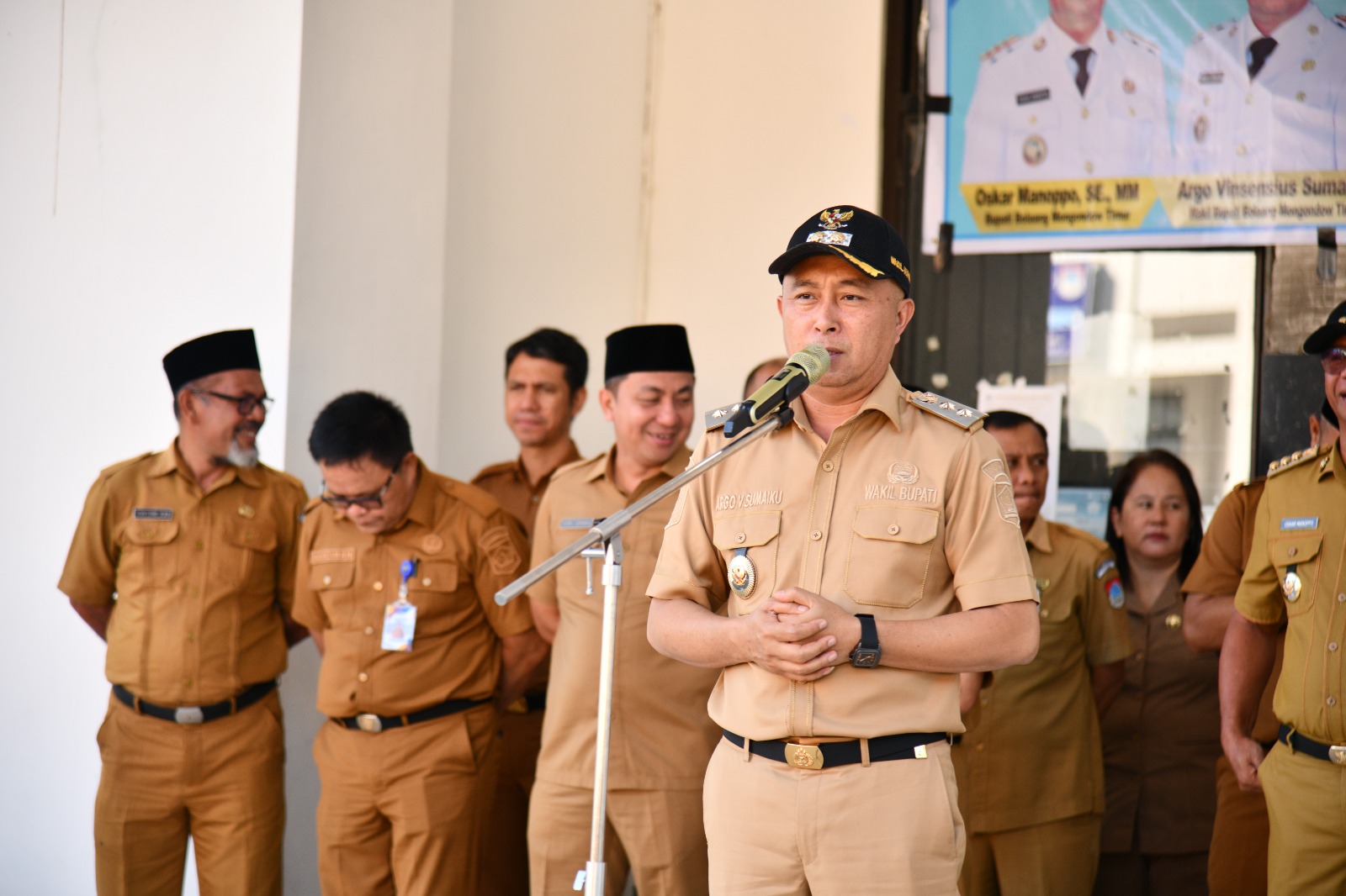 IKNews, BOLTIM – Bupati dan Wakil Bupati Bolaang Mongondow Timur (Boltim) Oskar Manoppo, S.E., M.M dan Argo V. Sumaiku memimpin Apel Kerja yang bertempat di Halaman Kantor Bupati Boltim. Senin, 5 Mei 2025.