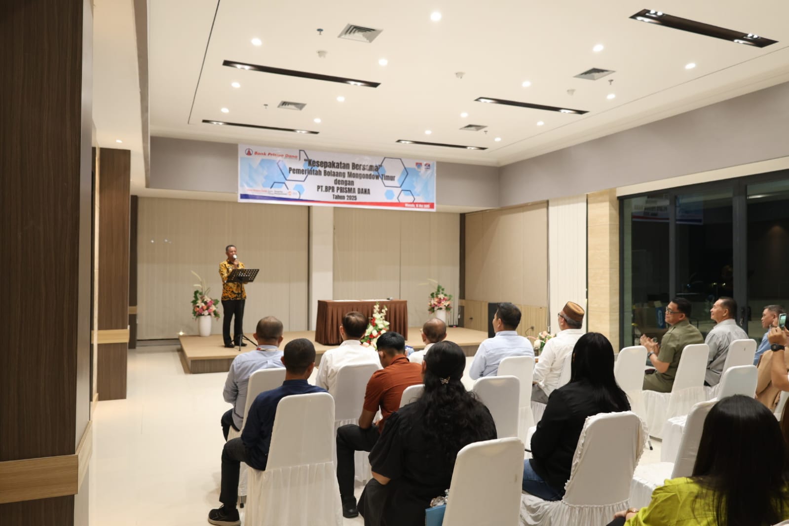 IKNews, BOLTIM – Dalam upaya memperkuat pelayanan keuangan yang aman dan terjangkau bagi Aparatur Sipil Negara (ASN), kabupaten Bolaang Mongondow Timur , Bupati Oskar Manoppo menandatangani kesepahaman bersama dengan Direktur PT BPR Prisma Dana Jefferson Lungkang bertempat di Manado, Jumat (16/5/2025).