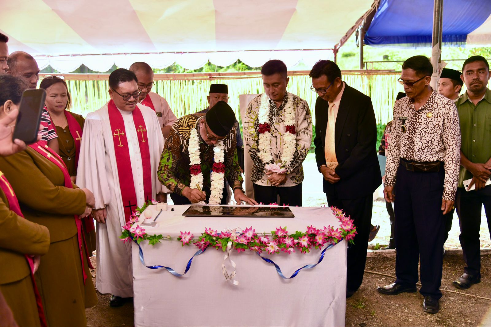 Acara berlangsung khidmat dan penuh semangat iman, ditandai dengan doa bersama, penandatanganan prasasti oleh Ketua Sinode GMIBM dan Bupati, serta pemotongan pita oleh Wakil Bupati sebagai tanda peresmian rumah ibadah tersebut.