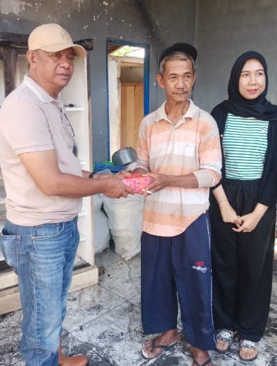 IKNews, BOLTIM — Bupati Bolaang Mongondow Timur (Boltim), Oskar Manoppo, meninjau langsung kondisi rumah milik Arahap Asinang, warga Desa Kotabunan Barat, Kecamatan Kotabunan, yang hangus terbakar pada Rabu dini hari (22/10/2025). Dalam kunjungan itu, bupati menyerahkan bantuan uang tunai dan memastikan korban akan diakomodir dalam program Rehabilitasi Rumah Tinggal Layak Huni (RTLH).