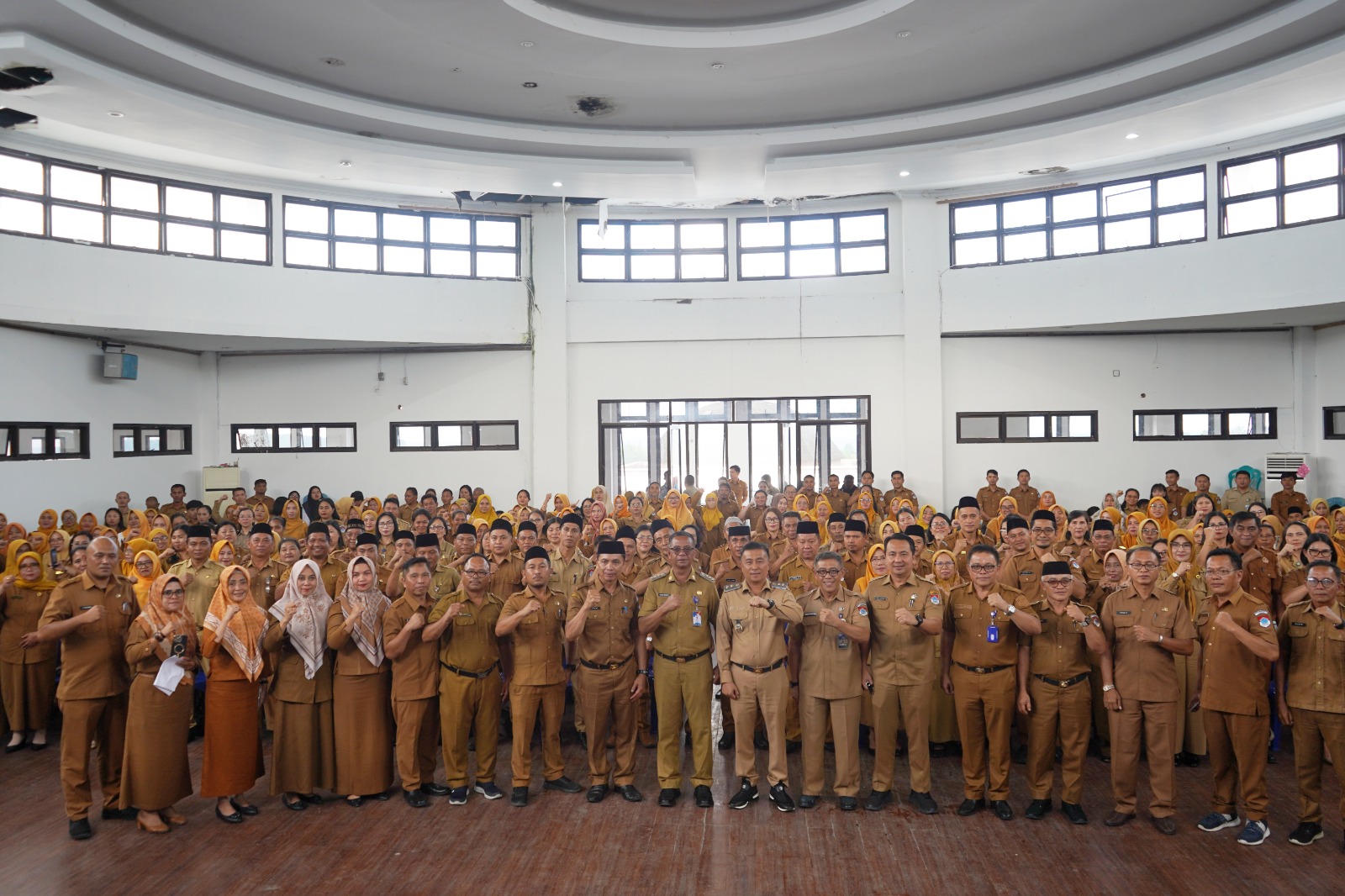 Gambar: Bupati Didampingi Wakil Bupati Boltim Tandatangani Perjanjian Kinerja Kepala TK, SD, dan SMP, (22/4/2025).