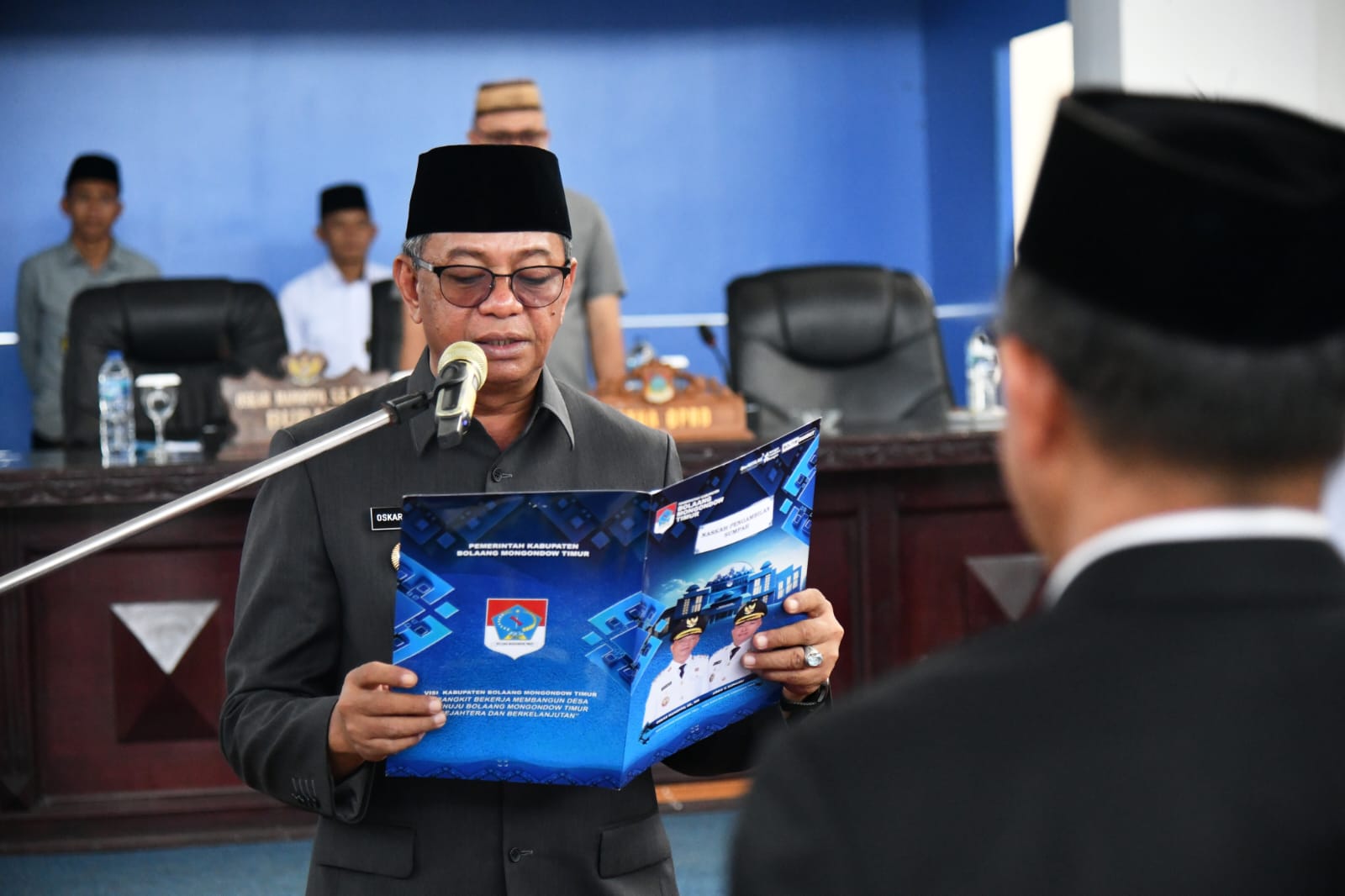 IKNews, BOLTIM – Bupati Bolaang Mongondow Timur, Oskar Manoppo, secara resmi melantik dan mengambil sumpah Moh. Iksan Pangalima, S.Pi., M.A.P sebagai Penjabat (Pj) Sekretaris Daerah Kabupaten Bolaang Mongondow Timur (Boltim), bertempat di Aula Kantor Bupati, Rabu (23/7). Pelantikan ini menindaklanjuti Surat Keputusan Gubernur Sulawesi Utara Nomor 800.1.3.3/BKD/SK/21/2025 tertanggal 16 Juli 2025, tentang penunjukan Penjabat Sekretaris Daerah Kabupaten Bolaang Mongondow Timur.