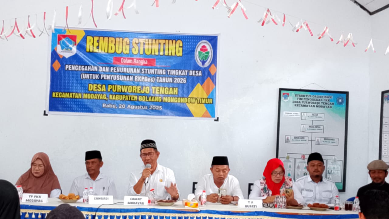 IKNews, BOLTIM – Pemerintah desa Purworejo tengah, Kecamatan Modayag, Kabupaten Bolaang Mongondow Timur ( Boltim).Bersama Tenaga ahli Menggelar Rembug stunting dalam rangka pencegahan dan penurunan stunting tingkat desa untuk penyusunan RkPDes tahun 2026, Desa. bertempat Aula kantor desa,Rabu ( 20/8/2025)