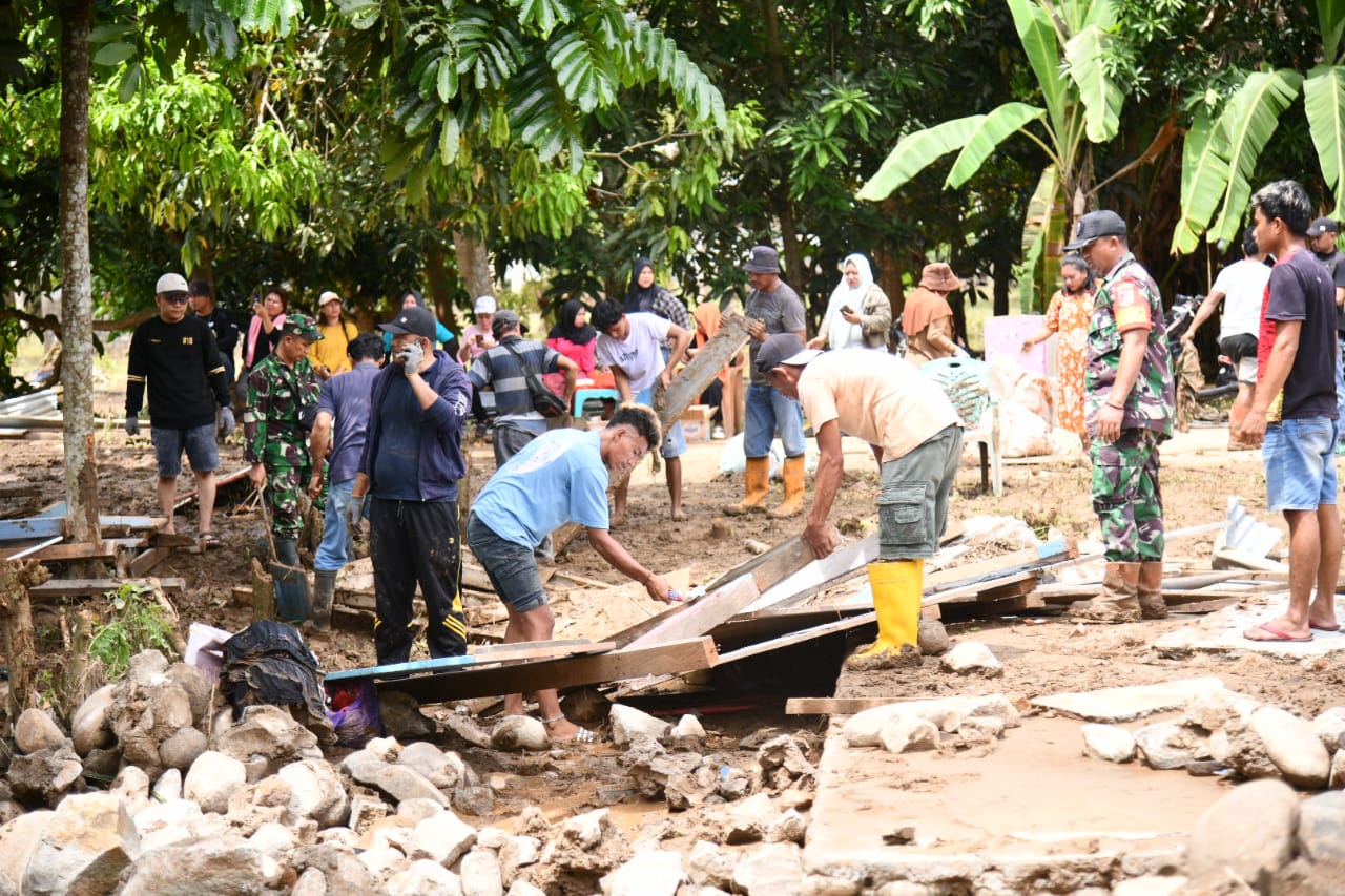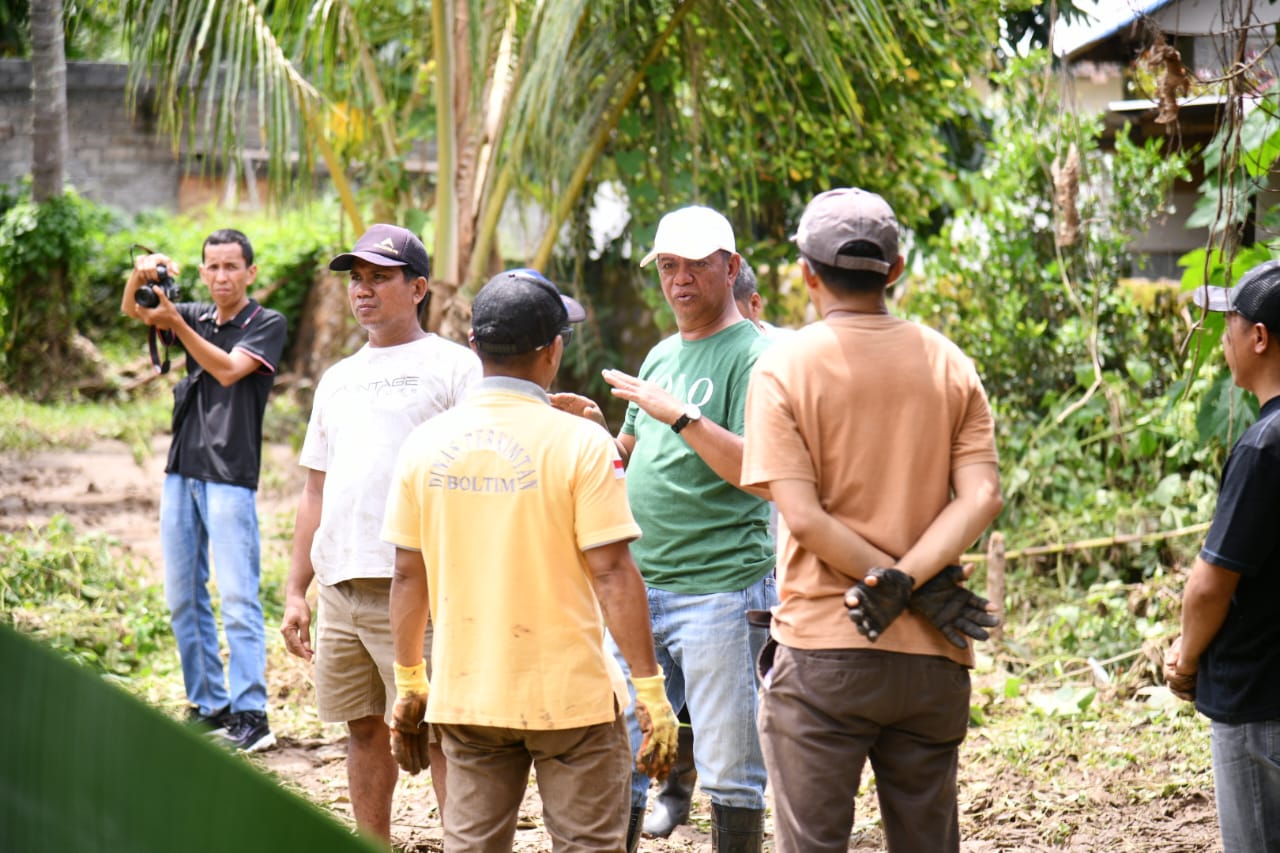 IKNews, BOLTIM – Dipimpin Bupati Bolaang Mongondow Timur (Boltim) Oskar Manoppo, S.E., M.M didampingi Ketua TP-PKK Ny. Rosita Manoppo-Pobela, S.E., M.Si dan Wakil Bupati Argo V. Sumaiku bersama Sekretaris TP-PKK Ny. Lucia K. Sumaiku-Mokoginta, A.Md.Kep serta seluruh Aparatur Sipil Negara (ASN) Pemerintah Kabupaten Bolaang Mongondow Timur, bersama masyarakat dan TNI, Polri laksanakan kerja bakti masal di lokasi terdampak banjir Desa Togid, Kecamatan Tutuyan. Kamis, (1/5/2025).