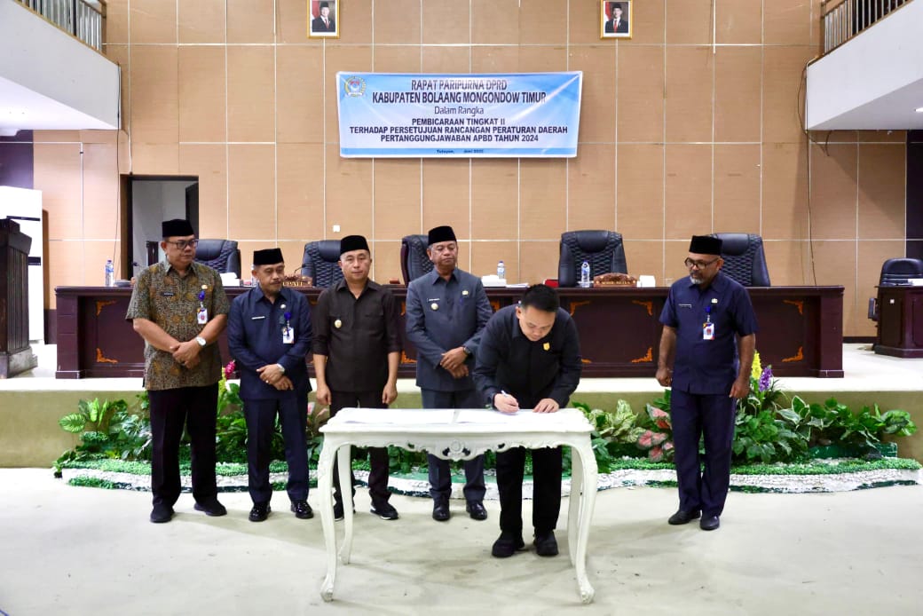 IKNews, BOLTIM – Pemerintah Kabupaten Bolaang Mongondow Timur (Pemkab Boltim) hari ini, melalui Rapat Paripurna Dewan Perwakilan Rakyat Daerah (DPRD) Boltim, melaksanakan Pembicaraan Tingkat II dan menyetujui Rancangan Peraturan Daerah (Ranperda) tentang Pertanggungjawaban Pelaksanaan Anggaran Pendapatan dan Belanja Daerah (APBD) Tahun Anggaran 2024. Agenda penting ini berlangsung khidmat di Gedung DPRD Boltim, menegaskan komitmen daerah terhadap transparansi dan tata kelola keuangan yang akuntabel.