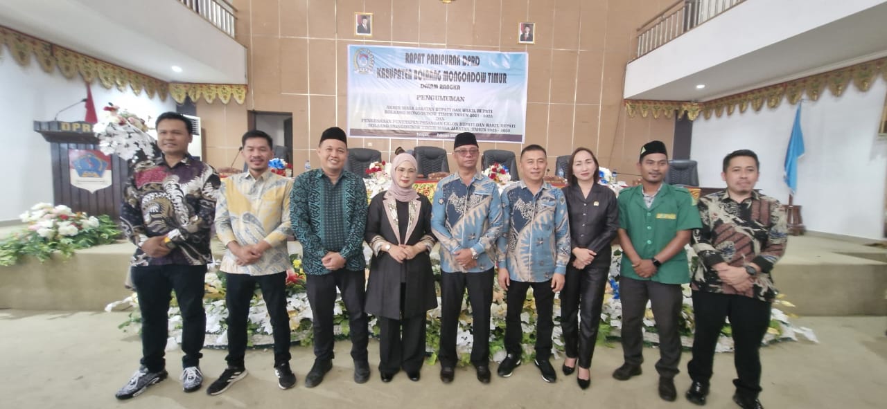 Ketua DPRD Samsudin Dama, yang memimpin rapat didampingi oleh Wakil Ketua Kevin Sumendap dan Meddy Lensun, menyampaikan bahwa paripurna ini memiliki dua agenda utama. Pengumuman berakhirnya masa jabatan Bupati dan Wakil Bupati Boltim periode 2021-2025. Penetapan dan pengesahan pasangan kepala daerah terpilih hasil Pilkada 27 November 2024,” jelas Ketua DPRD Boltim.