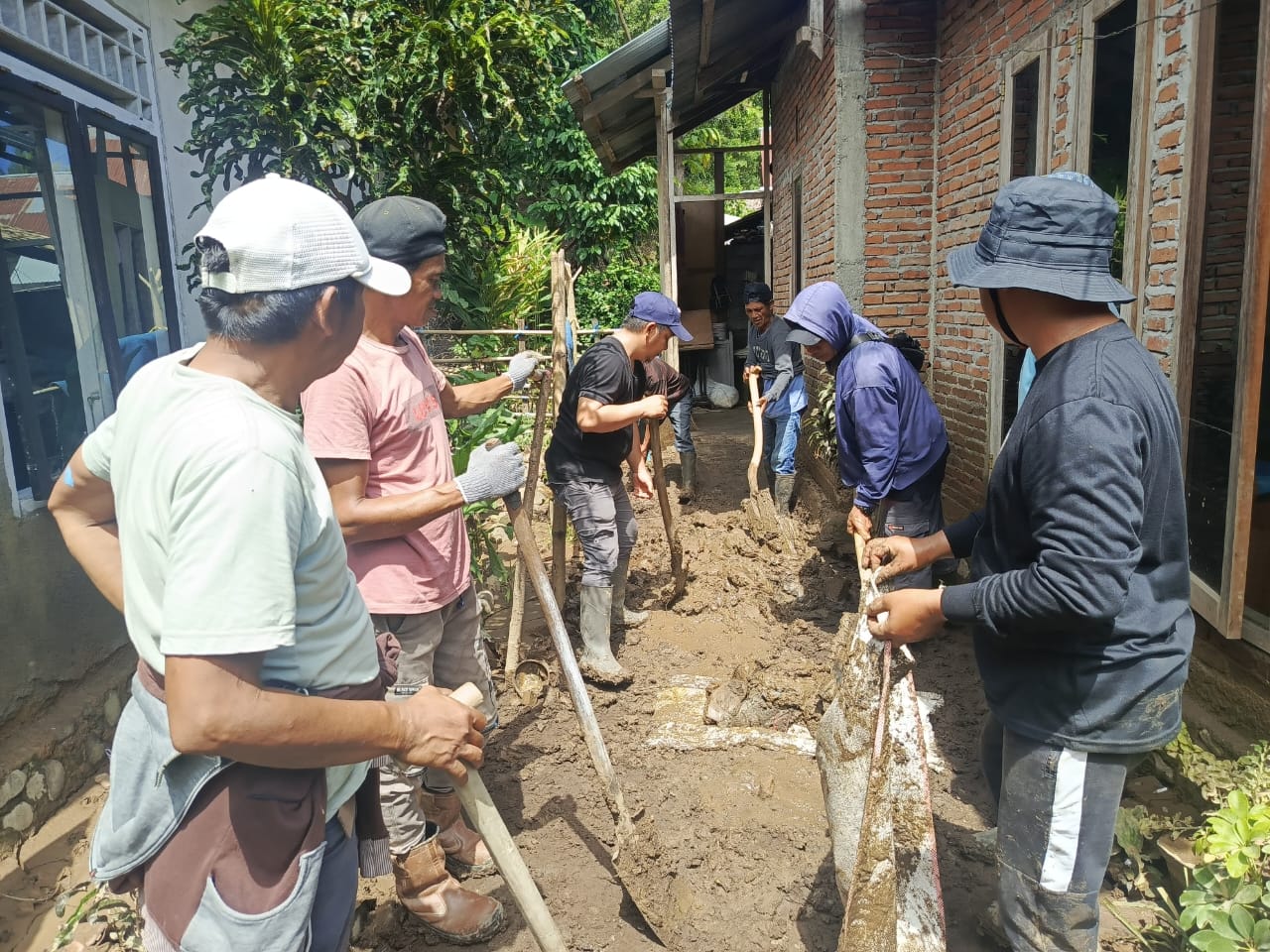 Diketahui selain memberikan bantuan pemdes Inaton bersama aparat melaksanakan kerja bakti pembersihan rumah warga yang terdampak banjir.*