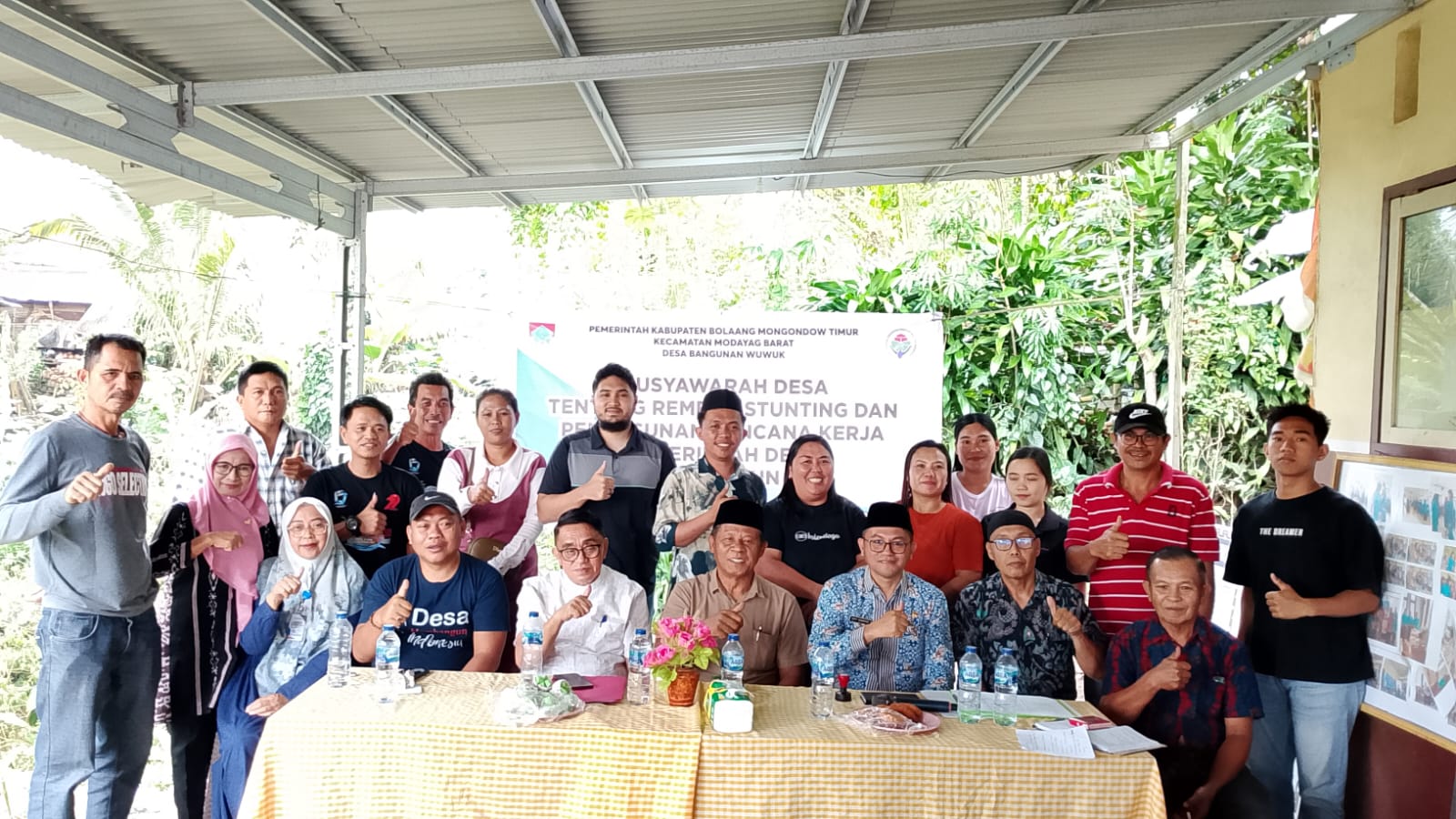 IKNews, BOLTIM – Pemerintah desa Bangunan Wuwuk, Bersama Tenaga ahli Bupati Bolaang Mongondow Timur Melaksanakan Musyawarah desa tentang rembuk stunting sekaligus penyusunan kerja ( RKPdes ) tahun 2026 .yang bertempat Kantor desa,Kamis ( 21/8/2025).