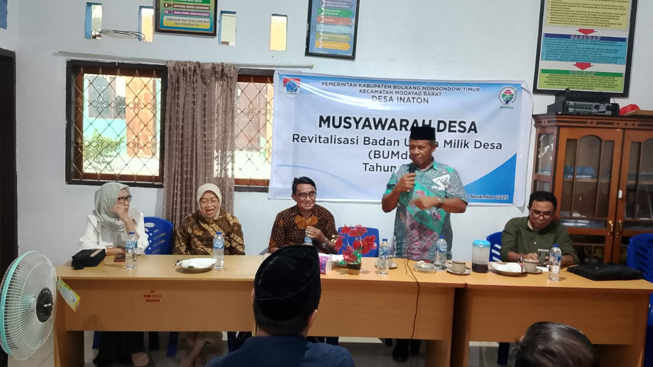 IKNews, BOLTIM – Musyawarah Desa (Musdes) untuk revitalisasi Badan Usaha Milik Desa (BUMDes) Inaton pada Kamis, 27 November 2025, berlangsung dinamis. Bertempat di kantor Desa Inaton, Kecamatan Modayag Barat, Pemerintah Desa menggandeng berbagai tenaga ahli dari Kabupaten Bolaang Mongondow Timur untuk membedah ulang arah pengelolaan BUMDes tahun 2025.