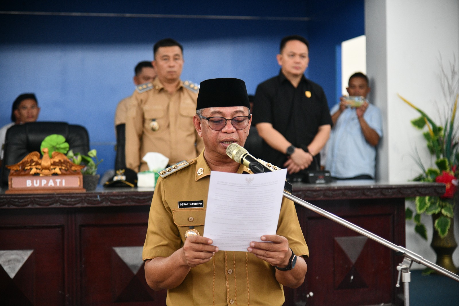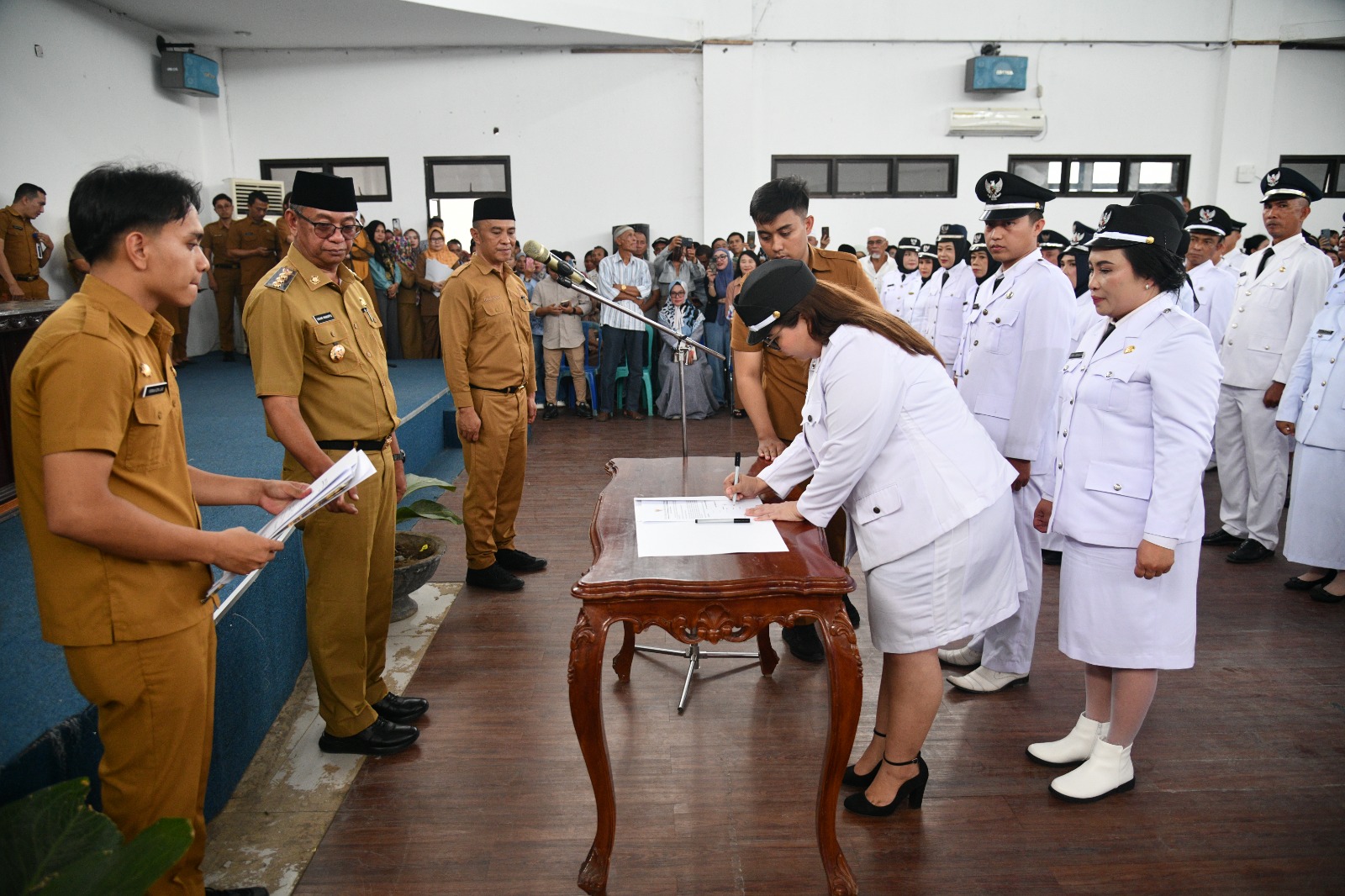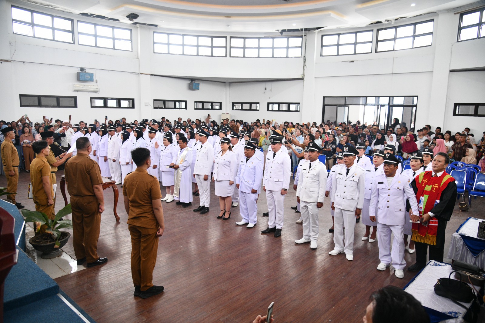 IKNews, BOLTIM – Bupati Bolaang Mongondow Timur (Boltim), Oskar Manoppo, SE,MM, yang didampingi Wakil Bupati Argo Sumaiku, secara resmi melantik 59 Penjabat Sangadi di Desa se-Kabupaten Boltim, Selasa (25/03/2025) berlangsung lantai tiga.