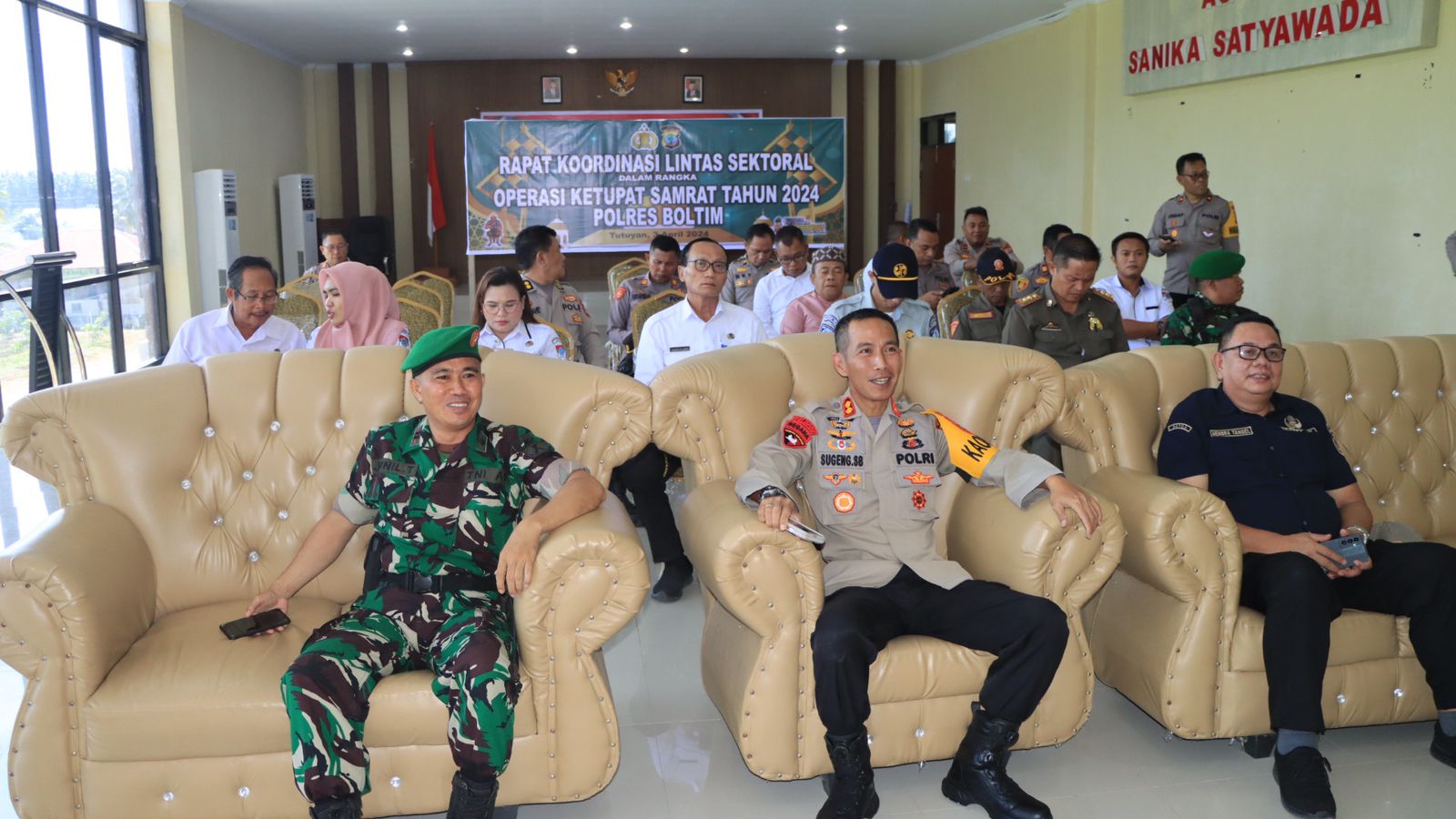 Kapolres Bolaang Mongondow Timur mengatakan bahwa rapat ini dilaksanakan dalam rangka kesiapan menghadapi Operasi Ketupat Samrat 2024 pengamanan kegiatan masyarakat bahkan arus mudik dan balik Idul Fitri 2024.