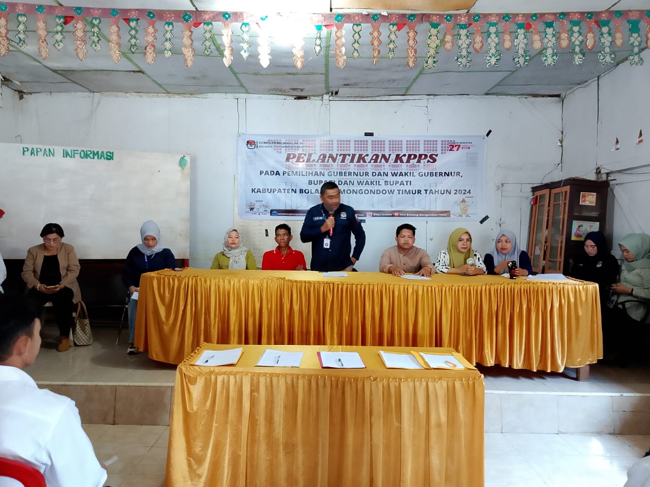 Heydi Pontoh ketua PPS Bongkudai Induk menyampaikan, Hari ini seluruh Panitia Pemungutan suara Bongkudai bersatu Melantik Kelompok penyelenggara pemungutan suara.