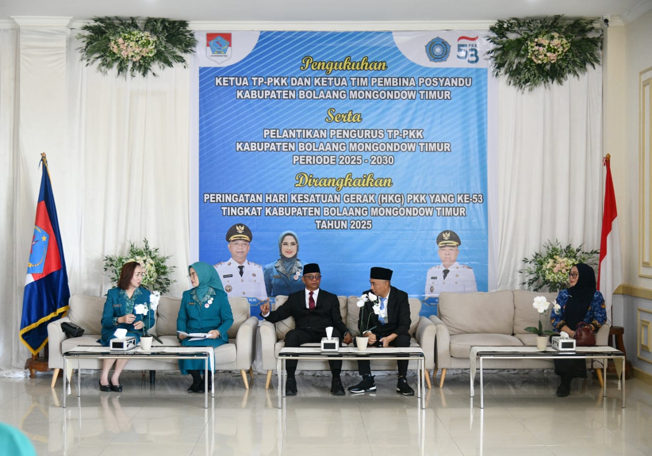 IKNews, BOLTIM – Bupati dan Wakil Bupati Bolaang Mongondow Timur (Boltim), Oskar Manoppo SE, MM, dan Argo V Sumaiku, mengukuhkan ketua TP-PKK dan ketua tim pembina posyandu, serta melantik pengurus TP-PKK Kabupaten, sekaligus dirangkaikan dengan peringatan Hari Kesatuan Gerak (HKG) PKK ke-53 yang berlangsung di ruang kerja Bupati Boltim. Senin, (17/3/2025).