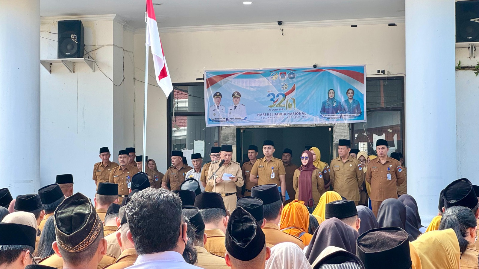 IKNews, BOLTIM – Pemerintah Daerah Kabupaten Bolaang Mongondow Timur (Boltim). melaksanakan Upacara memperingati Hari Keluarga Nasional yang ke-32 Tahun 2025.wakil Bupati Argo V. Sumaiku bertindak sebagai Inspektur Upacara yang dihadiri oleh Pj. Sekretaris Daerah Moh. Iksan Pangalima, S.Pi., M.A.P, Staf Ahli Bupati, para Asisten, seluruh ASN dilingkungan Pemkab Boltim, para Camat beserta jajaran yang bertempat di Halaman Kantor Bupati. Senin,( 30/6 2025) dengan mengusung tema “Dari Keluarga untuk Indonesia Maju”.