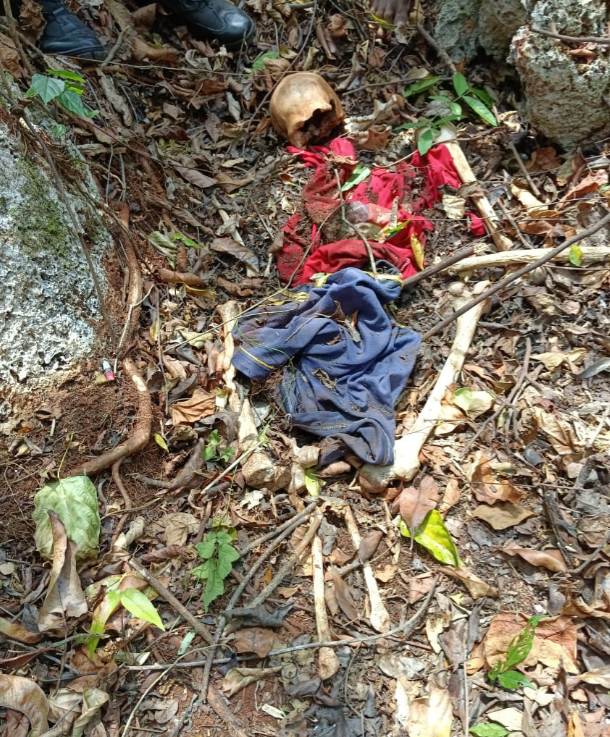 “Di TKP ditemukan Kondisi tulang belulang sudah terkumpul satu tempat dengan posisi melingkar, sebagian tulang sudah tertanam dalam akar pepohonan sekitar TKP9” jelasnya.