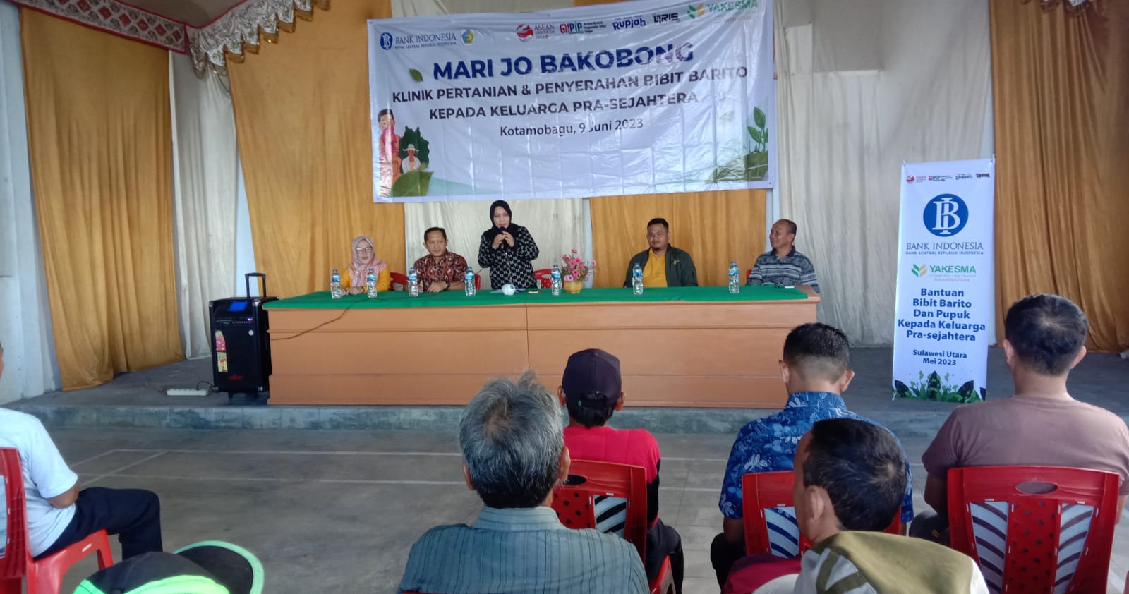 Pemeritah Kota (Pemkot) Kotamobagu, Asisten II Bidang Economi dan Pembangunan Siti Rafiqa Bora hadiri kegiatan Sosilisasi ‘Marijo Bakobong’ kliknik pertanian sekaligus penyerahan bibit barito dan pupuk kepada keluarga Pra- Sejahtera se Kecamatan Kotamobagu