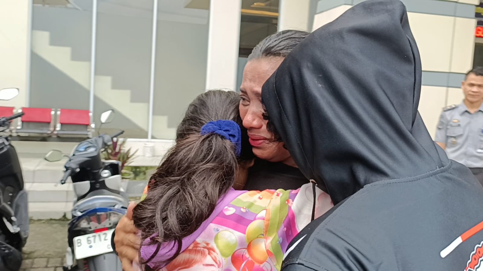 Suasana haru saat Prescy Lebanon Sono berpamitan dengan keluarganya di Kantor Imigrasi Kotamobagu sebelum dideportasi ke Filipina, Selasa (16/9/2025). (Foto: Rahman)