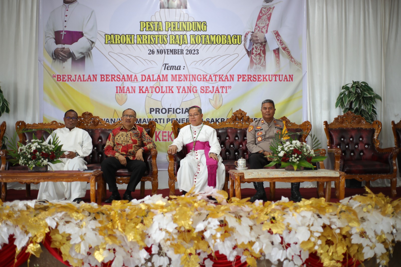 Turut hadir dalam acara tersebut, Uskup Manado, Mgr. Benedictus Estephanus Rolly Untu. MSC., Pastor Paroki Kristus Raja Kotamobagu, Pastor. Oktorius. T. Lalio, Pr., Dandim 1303 Bolaang Mongondow, Letkol. Inf. Topan Angker., S. Sos, Kabag SDM Polres Kotamobagu., AKP. Donal. S. Ngalimin., S.E., serta Dewan Pastoral Paroki dan Umat Katolik Paroki Kristus Raja Kotamobagu. Kehadiran mereka semakin memperkuat semangat untuk terus bersama-sama memajukan daerah yang mereka cintai.